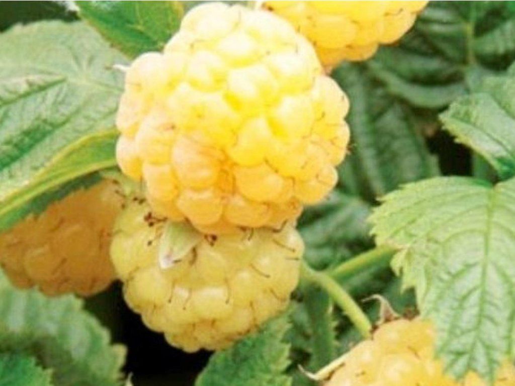 Himbeere 'Two Timer Sugana Yellow' - eine neue, exklusive Hybrid-Sorte der bekannten Sommerhimbeere. Im ausgewachsenen Zustand erreicht sie eine Höhe von 1,5-2 Metern. Es handelt sich um eine schnell wachsende Pflanze mit aufrechten Stängeln und sehr wenigen Seitentrieben. Die ersten Früchte ernten wir bereits im Juni, die nächste Ernte folgt im August. Die Früchte sind groß und haben eine gelbe Farbe. Ihr Geschmack ist süß, saftig und sehr lecker. Die Blätter sind tiefgrün, herzförmig und am Rand leicht gezackt. Die Früchte eignen sich zum direkten Verzehr, aber auch zur Weiterverarbeitung.