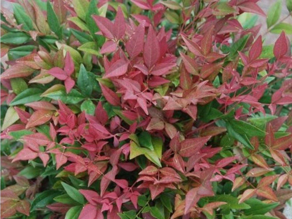 Nandina domestica Obsessed 'Seika' - ein kompakter, immergrüner oder halbimmergrüner Strauch (abhängig vom Wetter), der eine Höhe von 0,7 m und eine Breite von 0,6 m erreicht. Der Strauch ist in milden Wintern immergrün. Neu austreibende Blätter tragen eine leuchtend rote Farbe, im Laufe der Saison werden sie grüner. Im Herbst verzaubert sie erneut mit einer ausgeprägten Färbung in Rot- und Kupfertönen. Mitte des Sommers bildet sie konische Büschel sternförmiger weißer Blüten. Später ersetzen kleine grüne Beeren die Blüten, die sich zu leuchtend roten Beeren entwickeln. Sie kann auch in Behältern angebaut werden und sieht in Kombination mit Gräsern usw. sehr gut aus.