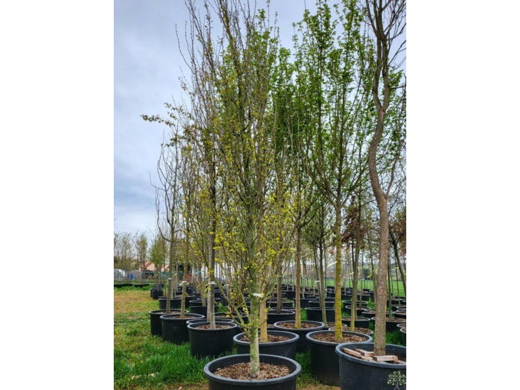Anbau: Laubbaum geeignet für sonnige bis halbschattige Standorte mit ausreichend Platz für die Kronenentwicklung. Am besten gedeiht er in tiefgründigen, nährstoffreichen, mittelschweren bis lehmigen Böden mit guter Wasserspeicherung und gleichzeitig ausreichender Durchlässigkeit. Bevorzugt neutrale bis leicht alkalische Reaktion, verträgt aber auch leicht saure Bedingungen. Gedüngt wird während der Vegetationsperiode, insbesondere bei jungen Bäumen werden ausgewogene Komplexdünger zur Förderung von Wachstum und Vitalität empfohlen. Die Bewässerung sollte nach der Pflanzung und in Trockenperioden regelmäßig erfolgen, der Boden sollte gleichmäßig feucht sein, nicht dauerhaft übermäßig nass. Bei der Pflanzung mehrerer Bäume wird ein Abstand von mindestens 6–8 Metern unter Berücksichtigung der zukünftigen Kronengröße und des Wurzelwerks empfohlen. Der Rückschnitt erfolgt im Frühjahr vor Vegetationsbeginn. Es werden trockene, beschädigte oder ungünstig wachsende Äste entfernt und bei jungen Exemplaren ein Erziehungsschnitt zur Anlage einer stabilen Kronenstruktur durchgeführt. Er ist frosthart und benötigt unter normalen Bedingungen keinen Winterschutz.