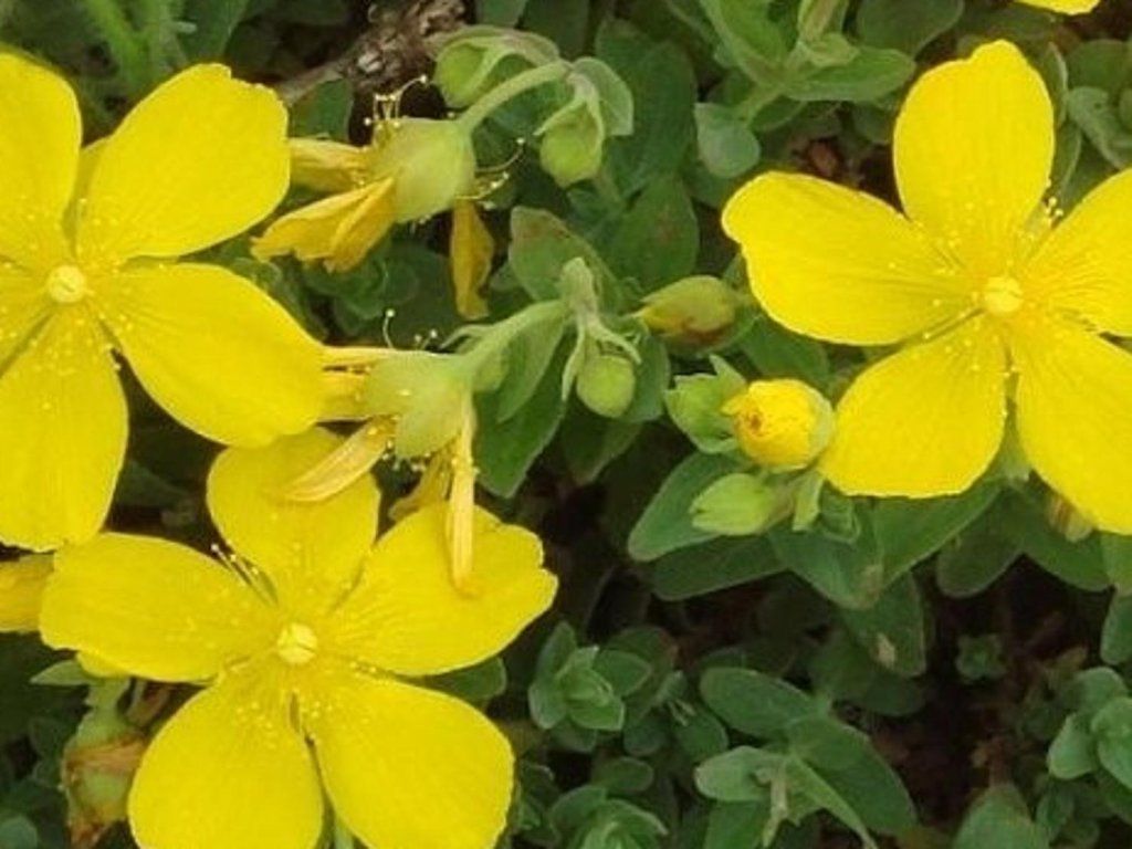Hypericum cerastoides - ist voll frosthart, obwohl sie aus warmen Gebieten des südöstlichen Balkans stammt. Sie bildet dichte Teppiche, nicht höher als 15 cm, aus silbrig-grauen Blättern. Sie ist absolut trockenheitsliebend und benötigt Wasserabzug, sonst verrottet sie. Ständige leichte Feuchtigkeit in Bodennähe kommt ihr jedoch sehr entgegen. Bevorzugt einen sonnigen Standort. Sie ist schön, wenn sie in einer vertikalen Fuge oder an einem steilen Hang eines Steingartens oder in einer Trockenmauer gepflanzt wird.