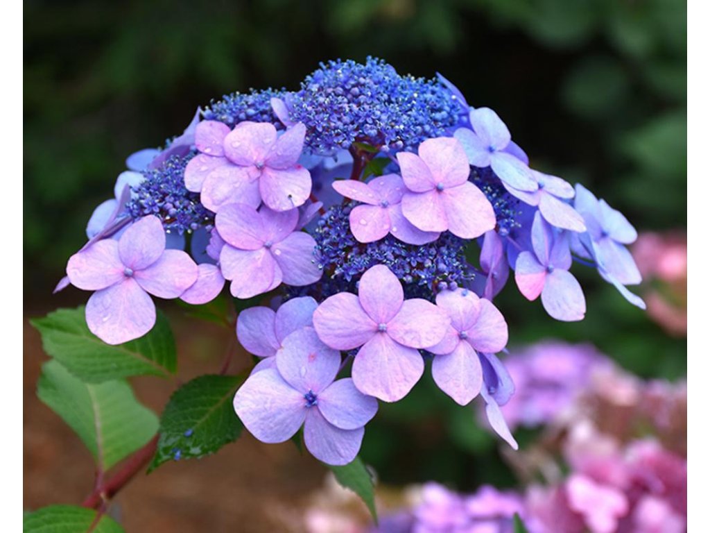 Hortensie 'Endless Summer Twist and Shout' Blau <\/span><\/strong>- <\/span><\/strong>wunderschön blühender kompakter Strauch, der je nach Kulturbedingungen eine Höhe und Breite von etwa 1 - 1,2 m erreicht. Obwohl es sich um eine Bauernhortensie handelt, ähneln die Blütenstände eher der Samthortensie. Sie erscheinen im Sommer, an festen Stielen, an jungen und alten Trieben. Sie sind flach, die fruchtbaren Blüten in der Mitte sind dunkler, von violetter Farbe und von einfachen, sterilen Blüten in violett-blauer Farbe umgeben. Die Blätter sind relativ groß, dunkelgrün, im Herbst nehmen sie einen rötlichen Farbton an. Die Blüten blühen von Juni bis September. Eine interessante Wahl für Gruppenpflanzungen. Die Hortensie macrophylla blüht am Holz des Vorjahres, daher entfernen wir im Frühjahr nur die durch Frost beschädigten Triebspitzen. Die Blütenfarbe hängt vom pH-Wert des Bodens ab. Insgesamt ist die Bauernhortensie ein beliebtes Element für Gärten und verleiht jedem Garten ein erhabenes und romantisches Aussehen.