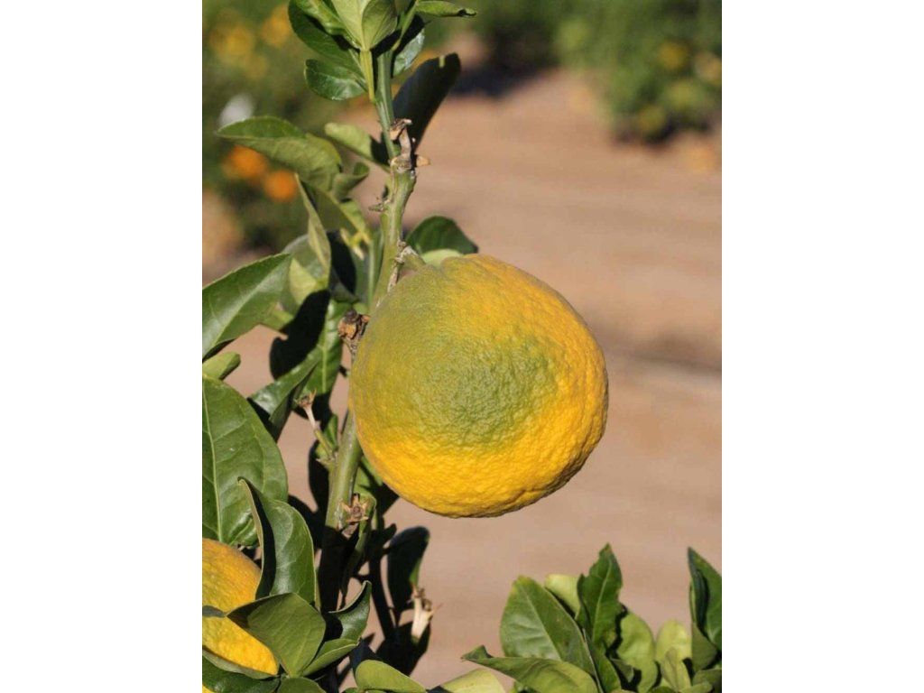 Hybrid Citrumelo x Yuzu - eine hybride Zitrusbaumsorte, die durch die Kreuzung von Citrumelo (einer Hybridform aus Pomelo und Grapefruit) und Citrus Yuzu (japanische Zitrone) entstanden ist. Diese Hybridkombination vereint die Eigenschaften beider Elternteile, was zu einzigartigen Merkmalen und Geschmacksrichtungen der Früchte führen kann. Der Baum Citrumelo x C. Yuzu ist ein aufrechter Strauch oder Baum, der eine Höhe von bis zu 3-4 Metern erreichen kann. Er neigt dazu, viele große Dornen zu produzieren, was ihm ein charakteristisches Aussehen verleiht. Die Blätter sind dunkelgrün und glänzend, ähnlich wie bei Zitruspflanzen, mit einem typischen Zitrusaroma. Die Früchte dieses Hybriden sind groß und haben eine runde bis ovale Form. Die Schale ist rau und uneben und kann je nach Reifegrad gelb, orange oder grün gefärbt sein. Das Fruchtfleisch ist saftig und hat einen ausgeprägten Zitrusgeschmack, der die Süße der Pomelo mit der charakteristischen Säure der Yuzu kombiniert.