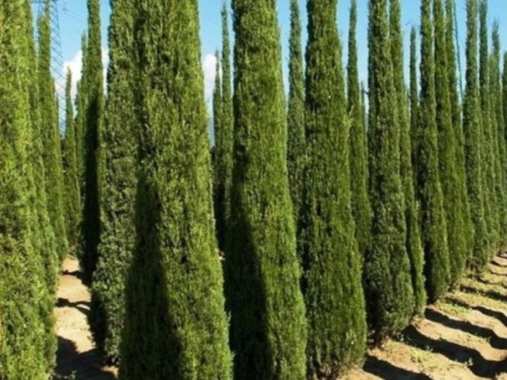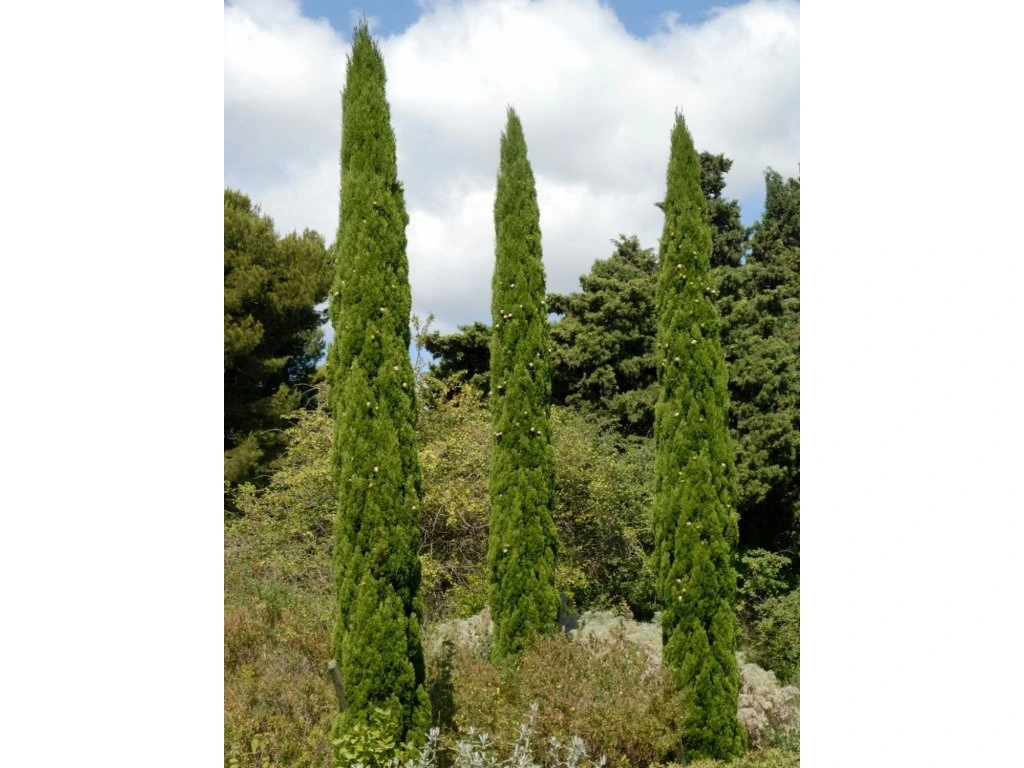 Immergrüne Zypresse 'Totem' - ein Kultivar der italienischen Zypresse, der spezifische Eigenschaften in Bezug auf Habitus und Größe aufweist. Sie stammt ursprünglich aus dem Mittelmeerraum, wo sie als säulen- oder kegelförmiger Baum wächst. Mit einer Wuchshöhe von 5–7 Metern und einer Breite von nur anderthalb Metern zeichnet sich 'Totem' durch eine elegante und gleichzeitig platzsparende Form aus, was sie zur idealen Wahl für diejenigen macht, die eine schlanke Pflanze für Gärten mit begrenztem Platz suchen. Sie gehört zur Gruppe der italienischen Zypressen, bei denen es sich um immergrüne Gehölze mit in Quirlen angeordneten Nadeln handelt. Ihre Nadeln, die in präzisen Reihen angeordnet sind, bilden eine dichte, leuchtend grüne Krone, die jedem Standort Eleganz verleiht. 'Totem' hat nicht nur aufgrund ihrer säulenartigen Form ein dekoratives Aussehen, sondern wird auch für ihre Widerstandsfähigkeit und einfache Pflege geschätzt. Sie ist relativ trockenheits- und frostbeständig, was sie zu einer guten Wahl für verschiedene klimatische Bedingungen macht. Sie ist nicht nur eine bemerkenswerte Gartendekoration, sondern zeugt auch von außergewöhnlichem Geschmack und einem Gespür für Gleichgewicht in der Natur. Ihr mediterraner Ursprung verleiht dem Garten einen Hauch von Eleganz und Noblesse, der sich mit Widerstandsfähigkeit und Anspruchslosigkeit verbindet.