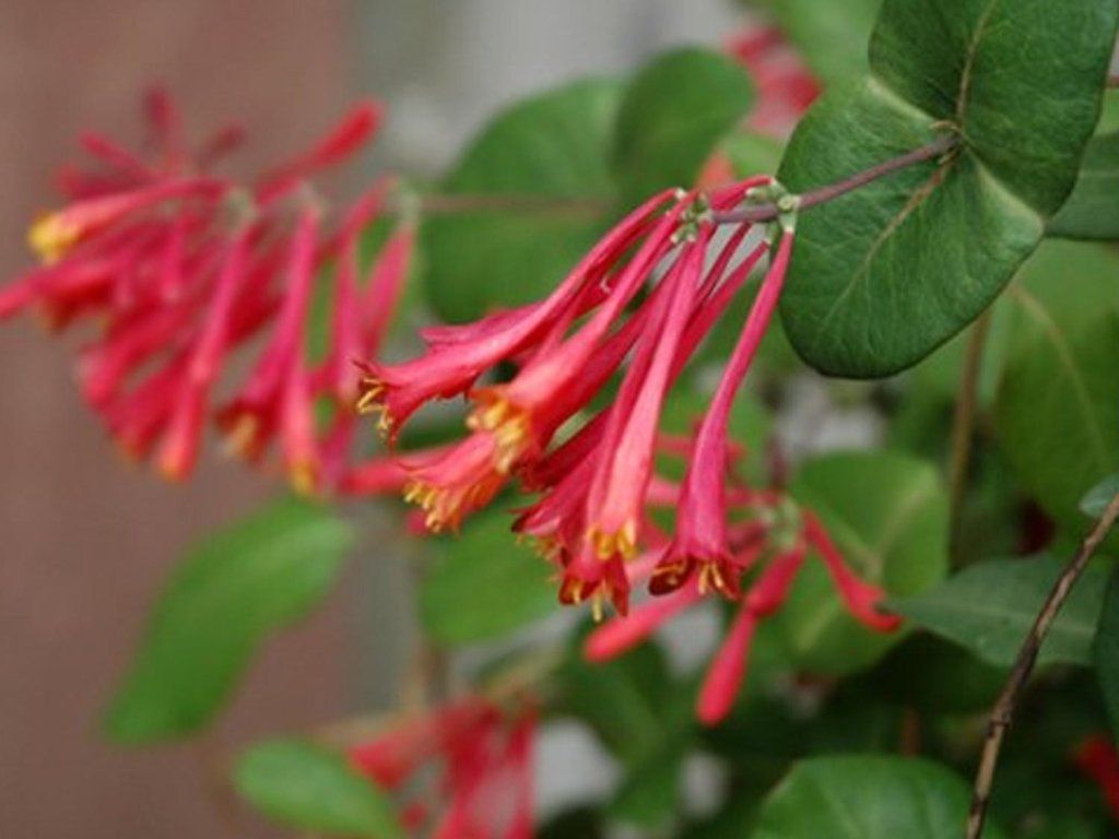 Geißblatt immergrün 'Blanche Sandman' - diese Sorte behält bei mildem Winter teilweise ihre Blätter. Die Blüten haben eine wunderschöne, tief scharlachrote Farbe und die Innenseite ist in einem Orangeton gefärbt. Die Blüte ist röhrenförmig und erscheint von Juni bis September. Die Pflanze schmückt mittelgrüne Blätter, die eine ovale bis eiförmige Form haben. Sie hat ein ziemlich schnelles und üppiges Wachstum. Nach der Blüte empfehlen wir einen Rückschnitt.