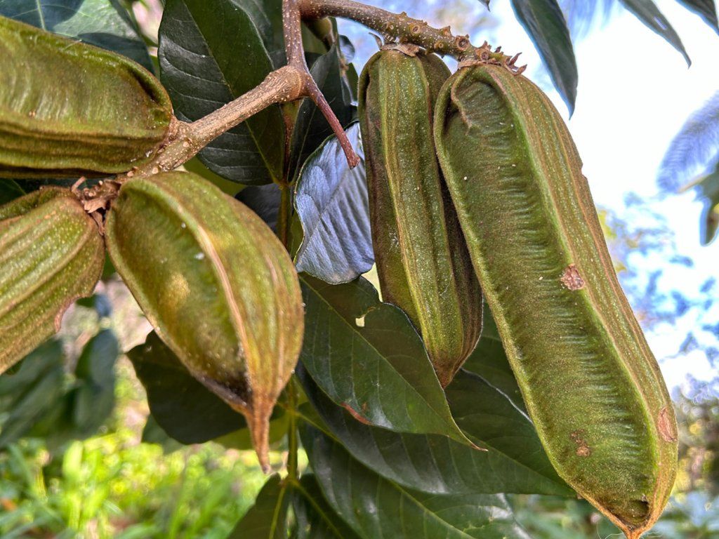 Inga edulis – eine tropische Obstart aus der Familie der Hülsenfrüchtler, die aus den feuchten Regionen Nord- und Westsüdamerikas stammt. In ihrer Heimat bildet sie einen schnell wachsenden Baum, der üblicherweise 15 bis 25 m hoch wird, unter günstigen Bedingungen auch mehr, mit einer weit schirmförmigen Krone und langen, paarig gefiederten Blättern. Die Blütenstände bilden dichte, weißliche bis cremeweiße Blütenbüschel mit vielen auffälligen Staubblättern, die leicht flauschig wirken und leicht duften. Die größten Anziehungspunkte sind die bis zu 50–100 cm langen Schoten mit süßem weißen Fruchtfleisch, das die Samen umhüllt. Der Geschmack wird als leicht vanillig beschrieben, der an Zuckerwatte oder ein sehr leichtes Vanilledessert erinnert. Die Früchte werden frisch verzehrt, das Fruchtfleisch enthält hauptsächlich natürliche Zucker, Ballaststoffe und phenolische Substanzen, in Facharbeiten werden auch Anthocyane und andere Antioxidantien erwähnt. Die Art wird auch in der Agrarforstwirtschaft geschätzt, da sie als Leguminose Luftstickstoff bindet und den Boden verbessert. Es handelt sich nicht um eine selbstbestäubende Art; für die Fruchtbildung ist eine Fremdbestäubung durch ein anderes Exemplar derselben Art vorteilhaft. In tropischen Pflanzungen blüht sie am häufigsten von Juni bis Oktober, in anderen Gebieten kann der Rhythmus je nach Temperatur und Feuchtigkeit schwanken. In der Komposition wirkt sie sehr exotisch und eignet sich als Solitär für Wintergärten, botanische Sammlungen und beheizte Gewächshäuser.