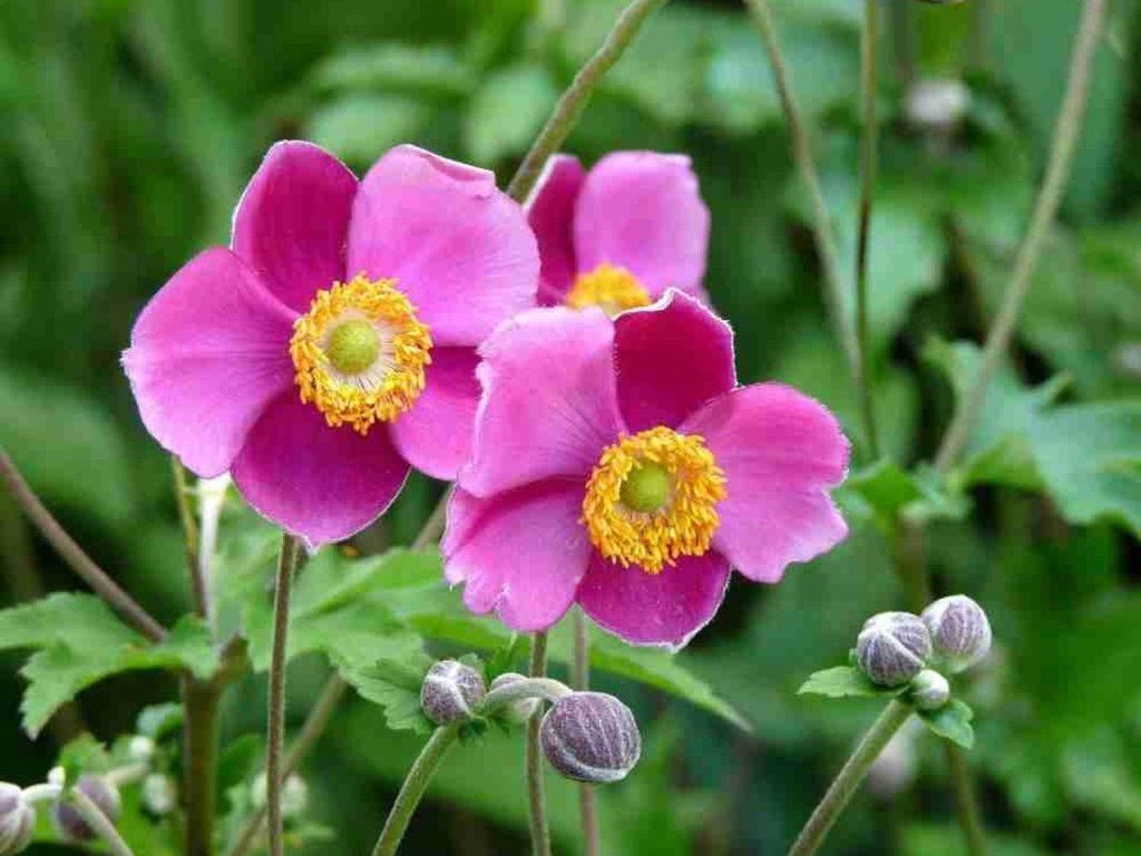 Anbau: Japanische Anemonen gedeihen am besten im Halbschatten, vertragen aber auch sonnige Standorte, wenn sie ausreichend Feuchtigkeit erhalten. Volle Sonne ohne Bewässerung kann zum Austrocknen der Blätter führen. Sie bevorzugen humosen, nährstoffreichen, durchlässigen und gleichmäßig feuchten Boden, idealerweise leicht sauer bis neutral (pH 5,5–7,0). Sie vertragen weder Trockenheit noch schwere, staunasse Böden. Das Mulchen mit Kompost oder Laub ist sehr wichtig. Die Bewässerung ist besonders im Sommer und während der Knospenbildung entscheidend. Der Boden sollte niemals vollständig austrocknen. Eine mäßige Düngung ist ratsam – im Frühjahr reichen Kompost oder Dünger für blühende Stauden aus. Eine Überdüngung mit Stickstoff fördert das Blattwachstum auf Kosten der Blüten. Sie ist gut frostbeständig, üblicherweise bis –25 bis –30 °C, aber junge Pflanzen können empfindlich auf Kahlfröste reagieren. In kälteren Regionen wird eine Wintermulchung empfohlen. Sie ist insgesamt gesund und widerstandsfähig, Krankheiten treten nur selten auf. Ein Rückschnitt ist nicht notwendig. Verblühte Stiele können über den Winter zur Schonung der Pflanze belassen werden und werden erst im Frühjahr zurückgeschnitten. Die Pflanze breitet sich durch Rhizome aus, jedoch weniger aggressiv als die Kanadische Anemone. Das Umpflanzen wird schlechter vertragen, daher ist es ratsam, den Standort gut zu überlegen.