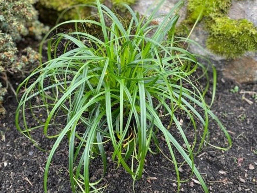 Japan-Segge 'Ribbon Falls' - Ziergras aus Japan, ungefähr 40-50 cm hoch. Sie zeichnet sich durch sehr dekorative, überhängende, leicht gewellte, grüne Blätter aus. Die Sorte blüht im Juli und September mit unscheinbaren bräunlichen Blütenständen. Dank ihres eleganten Aussehens und ihres kompakten Wuchses ist sie auch ideal für die Topfkultur. Sie ergänzt Stauden, Farne, Funkien oder andere schattenliebende Pflanzen hervorragend. Die Japan-Segge wird für ihre Kombination aus Anspruchslosigkeit, Eleganz und dauerhaftem Zierwert geschätzt.