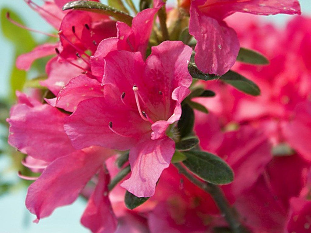 Sie gehört zur selben Gruppe wie Rhododendren. Im Gegensatz zu ihnen sind Azaleen kleiner (obwohl es auch größere Exemplare gibt) und einige Kultivare werfen im Herbst teilweise oder ganz ihr Laub ab. Während Rhododendren eher glockenförmige Blüten haben, ähneln die Blüten von Azaleen in ihrer Form einem Trichter. Für diejenigen, die nicht viel Platz haben, sind japanische Azaleen, die eher in die Breite als in die Höhe wachsen, absolut ideal. Die meisten Azaleen bevorzugen Teilsonne oder Halbschatten, da direkte Sonne zu Sonnenbrand führen kann und zu wenig Licht zu Vergeilung der Triebe und Blüten führt. Sie blühen von Mai bis Juni. Verblühte Blüten vorsichtig ausbrechen, damit der Strauch nicht weiter ausgelaugt wird.