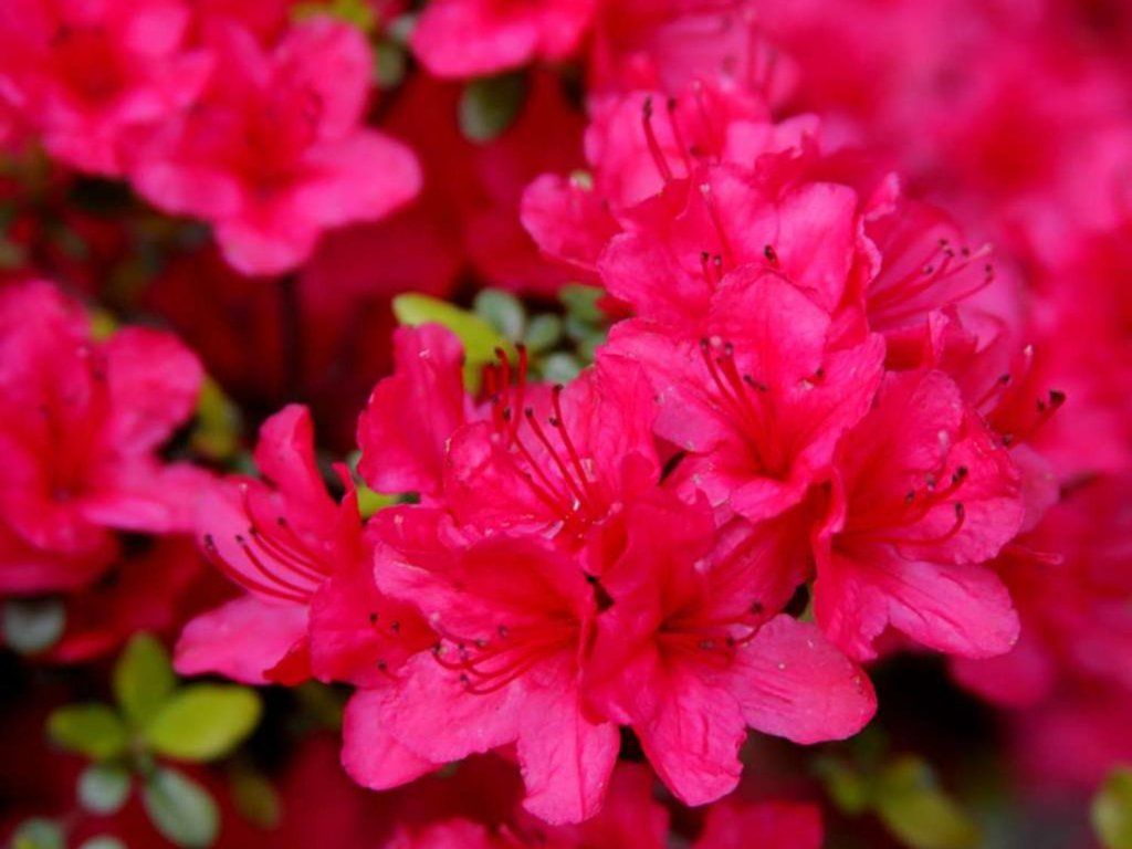 Sie gehört zur selben Gruppe wie Rhododendren. Im Gegensatz zu ihnen sind Azaleen kleiner (obwohl es auch größere Exemplare gibt) und einige Kultivare werfen im Herbst teilweise oder ganz ihr Laub ab. Während Rhododendren eher glockenförmige Blüten haben, ähneln die Blüten von Azaleen in ihrer Form einem Trichter. Für diejenigen, die nicht viel Platz haben, sind japanische Azaleen, die eher in die Breite als in die Höhe wachsen, absolut ideal. Die meisten Azaleen bevorzugen Teilsonne oder Halbschatten, da direkte Sonne zu Sonnenbrand führen kann und zu wenig Licht zu Vergeilung der Triebe und Blüten führt. Sie blühen von Mai bis Juni. Verblühte Blüten vorsichtig ausbrechen, damit der Strauch nicht weiter ausgelaugt wird.