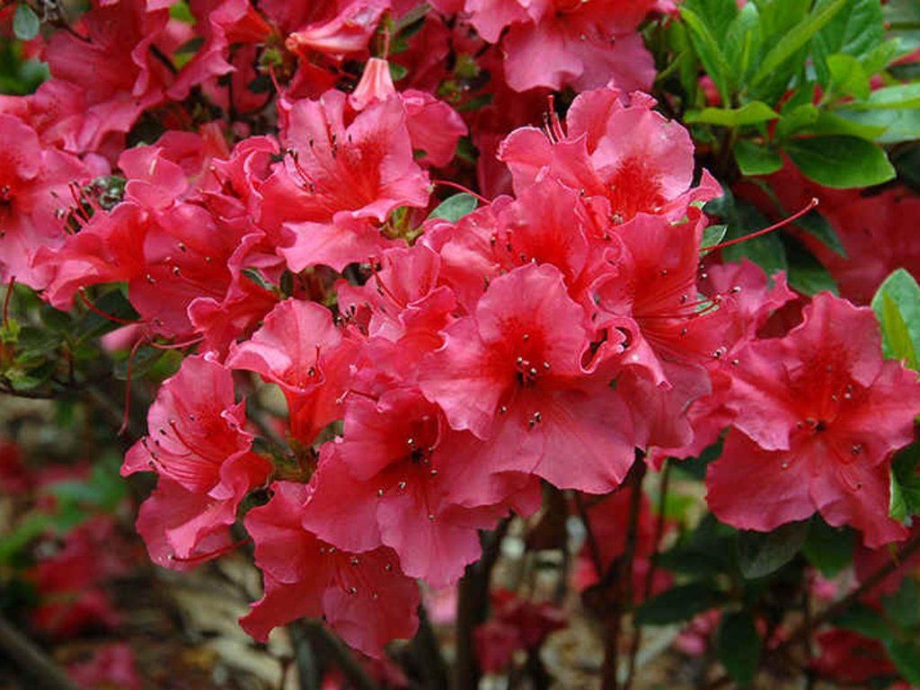 Sie gehört zur selben Gruppe wie Rhododendren. Im Gegensatz zu ihnen sind Azaleen kleiner (obwohl es auch größere Exemplare gibt) und einige Kultivare werfen im Herbst teilweise oder ganz ihr Laub ab. Während Rhododendren eher glockenförmige Blüten haben, ähneln die Blüten von Azaleen in ihrer Form einem Trichter. Für diejenigen, die nicht viel Platz haben, sind japanische Azaleen, die eher in die Breite als in die Höhe wachsen, absolut ideal. Die meisten Azaleen bevorzugen Teilsonne oder Halbschatten, da direkte Sonne zu Sonnenbrand führen kann und zu wenig Licht zu Vergeilung der Triebe und Blüten führt. Sie blühen von Mai bis Juni. Verblühte Blüten vorsichtig ausbrechen, damit der Strauch nicht weiter ausgelaugt wird.