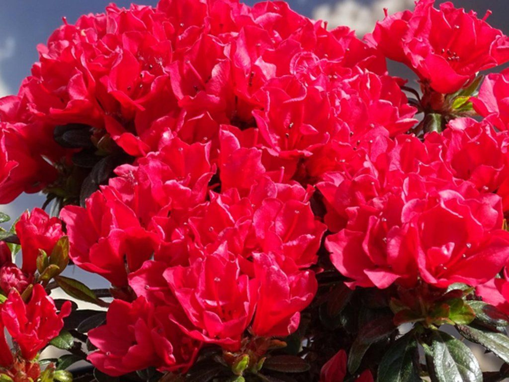 Sie gehört zur selben Gruppe wie Rhododendren. Im Gegensatz zu ihnen sind Azaleen kleiner (obwohl es auch größere Exemplare gibt) und einige Kultivare werfen im Herbst teilweise oder ganz ihr Laub ab. Während Rhododendren eher glockenförmige Blüten haben, ähneln die Blüten von Azaleen in ihrer Form einem Trichter. Für diejenigen, die nicht viel Platz haben, sind japanische Azaleen, die eher in die Breite als in die Höhe wachsen, absolut ideal. Die meisten Azaleen bevorzugen Teilsonne oder Halbschatten, da direkte Sonne zu Sonnenbrand führen kann und zu wenig Licht zu Vergeilung der Triebe und Blüten führt. Sie blühen von Mai bis Juni. Verblühte Blüten vorsichtig ausbrechen, damit der Strauch nicht weiter ausgelaugt wird.