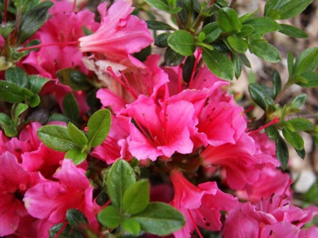 Sie gehören zur selben Gruppe wie die viel größeren Rhododendren. Im Gegensatz zu ihnen sind Azaleen kleiner (obwohl es auch größere Exemplare gibt) und einige Sorten werfen im Herbst teilweise oder ganz ihr Laub ab. Während Rhododendren eher glockenförmige Blüten haben, ähneln die Blüten von Azaleen in ihrer Form einem Trichter. Für diejenigen, die nicht viel Platz haben, sind japanische Azaleen, die eher in die Breite als in die Höhe wachsen, absolut ideal. Die meisten Azaleen bevorzugen Teilsonne oder Halbschatten, da direkte Sonne zu Sonnenbrand führen kann und zu wenig Licht zu Vergeilung der Triebe und Blüten führt. Sie blühen von Mai bis Juni – verblühte Blüten werden vorsichtig ausgebrochen, damit sie den Strauch nicht weiter auslaugen.
