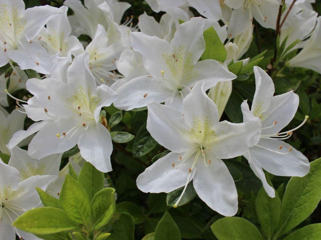 Sie gehören zur selben Gruppe wie die viel größeren Rhododendren. Im Gegensatz zu ihnen sind Azaleen kleiner (obwohl es auch größere Exemplare gibt) und einige Sorten werfen im Herbst teilweise oder ganz ihr Laub ab. Während Rhododendren eher glockenförmige Blüten haben, ähneln die Blüten von Azaleen in ihrer Form einem Trichter. Für diejenigen, die nicht viel Platz haben, sind japanische Azaleen, die eher in die Breite als in die Höhe wachsen, absolut ideal. Die meisten Azaleen bevorzugen Teilsonne oder Halbschatten, da direkte Sonne zu Sonnenbrand führen kann und zu wenig Licht zu Vergeilung der Triebe und Blüten führt. Sie blühen von Mai bis Juni – verblühte Blüten werden vorsichtig ausgebrochen, damit sie den Strauch nicht weiter auslaugen.