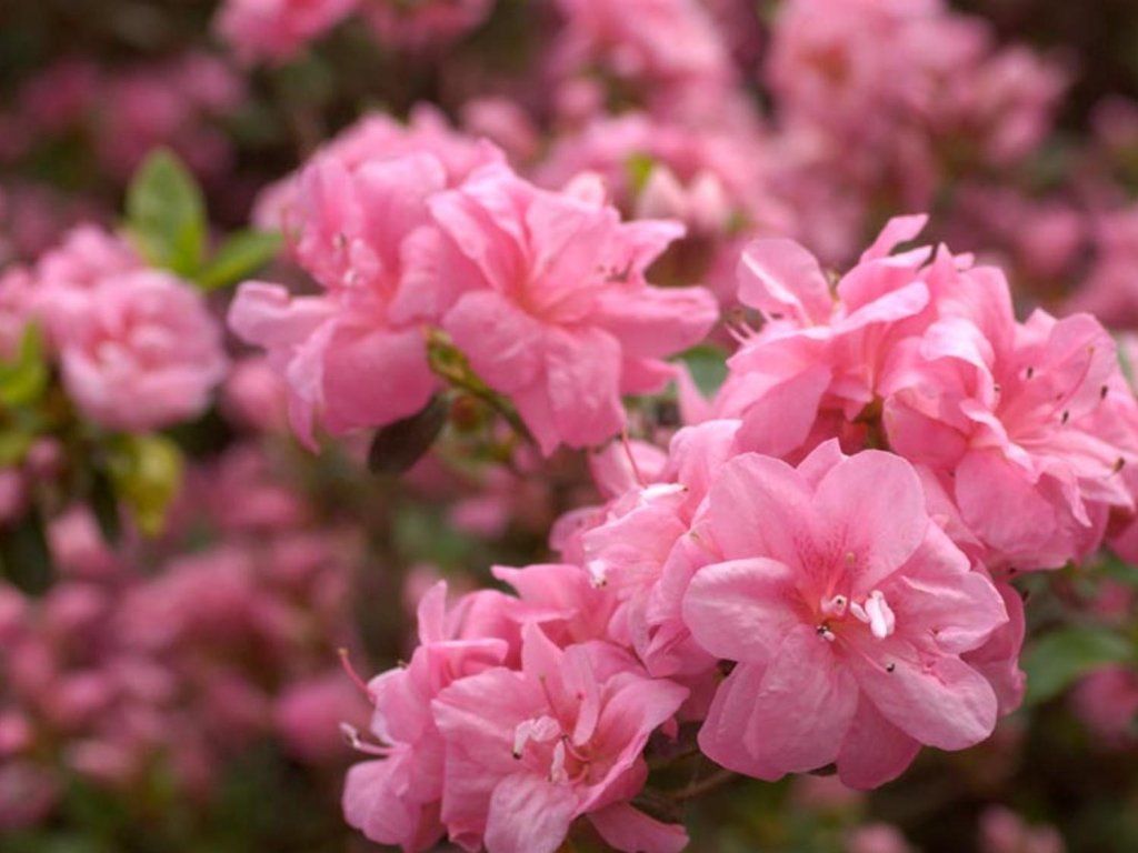 Azaleen gehören zur gleichen Gruppe wie die viel größeren Rhododendren. Im Gegensatz zu ihnen sind Azaleen kleiner (obwohl es auch größere Exemplare gibt) und einige Kultivare werfen im Herbst teilweise oder ganz ihr Laub ab. Während Rhododendren eher glockenförmige Blüten haben, ähneln die Blüten von Azaleen in ihrer Form einem Trichter. Für diejenigen, die nicht viel Platz haben, sind japanische Azaleen, die eher in die Breite als in die Höhe wachsen, absolut ideal. Die meisten Azaleen bevorzugen Teilsonne oder Halbschatten, da direkte Sonne zu Sonnenbrand führen kann und zu wenig Licht zu Vergeilung der Triebe und Blüten führt. Sie blühen von Mai bis Juni. Verblühte Blüten vorsichtig ausbrechen, damit der Strauch nicht weiter ausgelaugt wird.