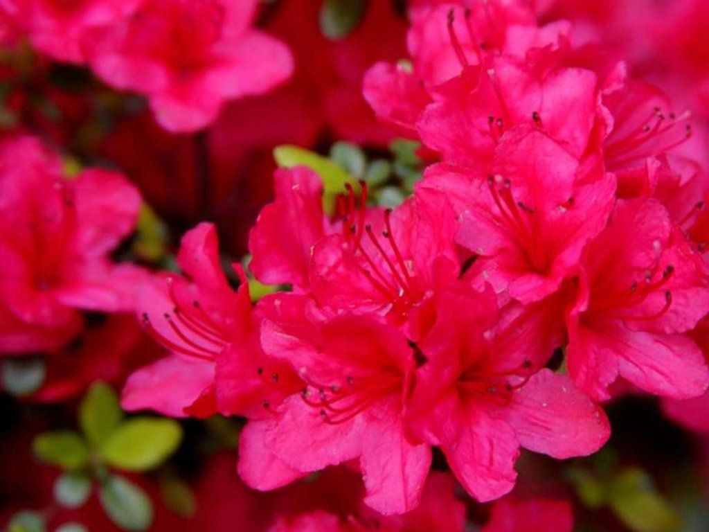 Azaleen gehören zur gleichen Gruppe wie die viel größeren Rhododendren. Im Gegensatz zu ihnen sind Azaleen kleiner (obwohl es auch größere Exemplare gibt) und einige Kultivare werfen im Herbst teilweise oder ganz ihr Laub ab. Während Rhododendren eher glockenförmige Blüten haben, ähneln die Blüten von Azaleen in ihrer Form einem Trichter. Für diejenigen, die nicht viel Platz haben, sind japanische Azaleen, die eher in die Breite als in die Höhe wachsen, absolut ideal. Die meisten Azaleen bevorzugen Teilsonne oder Halbschatten, da direkte Sonne zu Sonnenbrand führen kann und zu wenig Licht zu Vergeilung der Triebe und Blüten führt. Sie blühen von Mai bis Juni. Verblühte Blüten vorsichtig ausbrechen, damit der Strauch nicht weiter ausgelaugt wird.