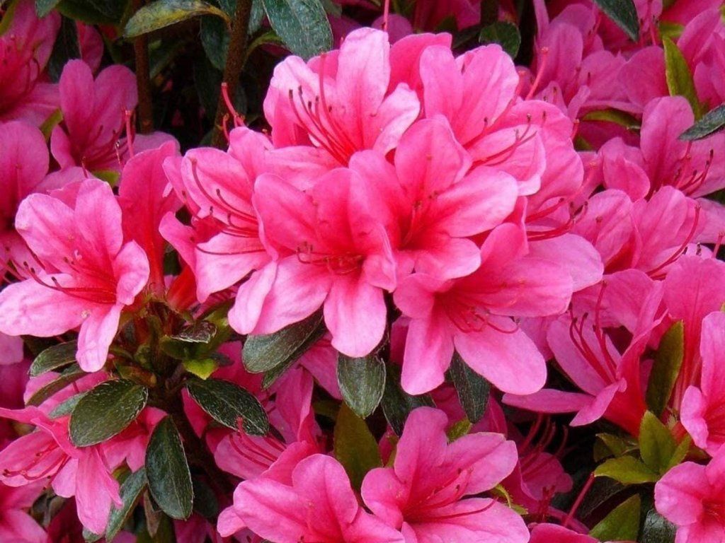 Sie gehören zur selben Gruppe wie die viel größeren Rhododendren. Im Gegensatz zu ihnen sind Azaleen kleiner (obwohl es auch größere Exemplare gibt) und einige Sorten werfen im Herbst teilweise oder ganz ihr Laub ab. Während Rhododendren eher glockenförmige Blüten haben, ähneln die Blüten von Azaleen in ihrer Form einem Trichter. Für diejenigen, die nicht viel Platz haben, sind japanische Azaleen, die eher in die Breite als in die Höhe wachsen, absolut ideal. Die meisten Azaleen bevorzugen Teilsonne oder Halbschatten, da direkte Sonne zu Sonnenbrand führen kann und zu wenig Licht zu Vergeilung der Triebe und Blüten führt. Sie blühen von Mai bis Juni – verblühte Blüten werden vorsichtig ausgebrochen, damit sie den Strauch nicht weiter auslaugen.