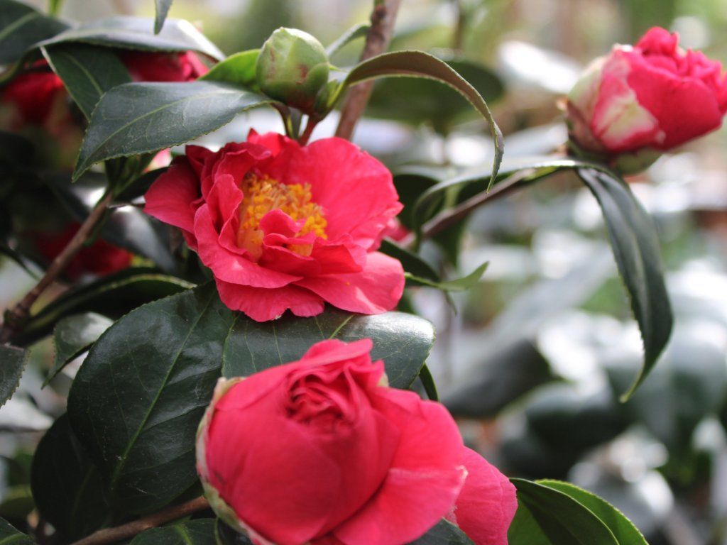 Anbau: Sie benötigt einen halbschattigen Standort mit gestreutem Licht, idealerweise geschützt vor der scharfen Wintersonne, die zu Schäden an Blättern und Knospen führen kann. Ein windgeschützter Ort und ein stabiles Mikroklima bezüglich starker Temperaturschwankungen sind vorteilhaft. Der Boden sollte sauer bis schwach sauer mit einem pH-Wert von etwa 4,5-5,5 sein, humusreich, dauerhaft mäßig feucht, aber gut durchlässig. Eine Drainageschicht und eine Mulchschicht aus Pinienrinde werden empfohlen, um das Austrocknen zu begrenzen und die saure Reaktion des Substrats zu erhalten. Die Pflanzung erfolgt im Frühjahr oder Herbst, wobei der Wurzelballen flach gesetzt wird. Sie bevorzugt regelmäßige Bewässerung, insbesondere bei in Kübeln kultivierten Pflanzen, jedoch stets ohne langfristige Staunässe. Gedüngt wird mit Düngemitteln für säureliebende Gehölze vom Frühjahr bis zum Frühsommer. Ein Rückschnitt ist normalerweise nicht erforderlich, beschränkt sich auf das Entfernen beschädigter oder zu dicht stehender Äste nach der Blüte. Für den Winter werden die Pflanzen an einen hellen, kühlen Ort bei etwa 2–8 °C gebracht, wo sich die Knospen natürlich entwickeln. Die Überwinterung in wärmeren Innenräumen wird nicht empfohlen, da dies zu einem Abfallen der Knospen führt.