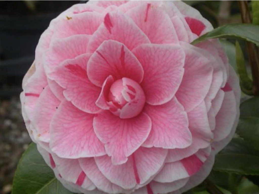 Japanische Kamelie 'Bonomiana' - Camellia japonica stammt aus den feuchten Waldgebieten Japans, Koreas und Südostchinas, wo sie im Halbschatten unter Baumkronen in sauren, humosen Böden wächst. Die Sorte 'Bonomiana' ist eine historische europäische Züchtung aus dem 19. Jahrhundert, die traditionell in Schlosspalämen und Orangerien kultiviert wurde. Sie zeichnet sich durch einen aufrechten bis breit buschigen Wuchs und ein langsameres Wachstum aus. Im Erwachsenenalter erreicht sie eine Höhe von etwa 2-3 m und eine Breite von 1,5-2 m, bei der Kultivierung im Kübel bleibt sie normalerweise kleiner. Die Blätter sind immergrün, elliptisch, ledrig, dunkelgrün und glänzend. Die Blüten sind gefüllt, weit schalenförmig, mit einem Durchmesser von 10-12 cm, die Grundfarbe ist hellrosa bis fast weiß mit unregelmäßiger dunklerer rosa Sprenkelung. Die Blüte erfolgt schrittweise von Februar bis April, abhängig von den Temperaturbedingungen. Dieser Kultivar wird hauptsächlich als Solitärpflanze in Kübeln, in Wintergärten und an repräsentativen Eingängen eingesetzt, wo die Blüte besonders zur Geltung kommt. Die Pflanze ist im frühen Frühjahr leicht bienenfreundlich.