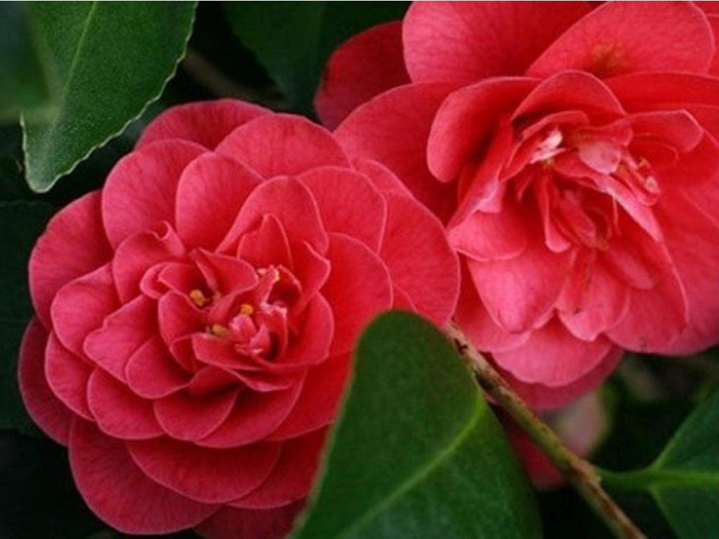 Japanische Kamelie 'Lady Campbell' - Camellia japonica stammt aus den Waldgebieten Japans, Koreas und Südostchinas, wo sie im Halbschatten unter dem Baumdach wächst, in einer Umgebung mit höherer Luftfeuchtigkeit und in sauren, humosen Böden. Die Sorte 'Lady Campbell' ist eine historische europäische Züchtung aus dem 19. Jahrhundert, die vor allem in Schlossgärten und Kameliensammlungen verbreitet ist. Der Strauch wächst langsam bis mäßig schnell, hat einen aufrechten, dichten Habitus und erreicht im Erwachsenenalter eine Höhe von etwa 2-3 m und eine Breite von 1,5-2 m. Bei langfristiger Kultur im Kübel bleibt sie meist kompakter. Die Blätter sind immergrün, elliptisch, ledrig, dunkelgrün und stark glänzend. Die Blüten sind groß, voll, schalenförmig bis pfingstrosenartig, mit einem Durchmesser von 10-12 cm, mit dicht angeordneten Blütenblättern in einem rot-rosa Farbton, der bei kühlerem Wetter leicht nachdunkeln kann. Die Blütezeit erstreckt sich von Februar bis April. Diese Sorte wird als Solitärpflanze in Kübeln, in Wintergärten und an repräsentativen Eingängen eingesetzt, wo Form und Farbe der Blüten zur Geltung kommen. In der frühen Frühlingszeit ist die Pflanze mäßig bienenfreundlich.