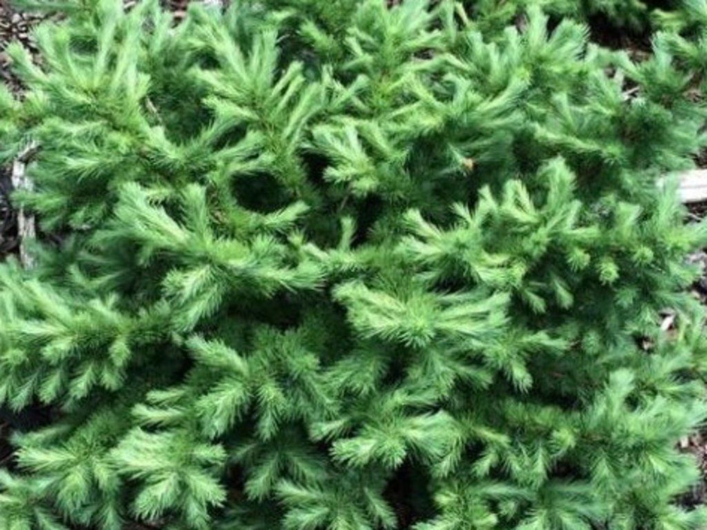 Lärche Kaempferi 'Grey Pearl' - Zwergform, die ohne Veredelung eine Höhe von 1m und eine Breite von 1,3m erreicht. Die Nadeln sind weich und laubabwerfend. Ihre Färbung kann je nach Jahreszeit variieren. Beim Austrieb sind sie in frischem Grün, später ändern sie sich zu Blau-Grün mit silbrigem Schimmer. Sie wächst sehr langsam.