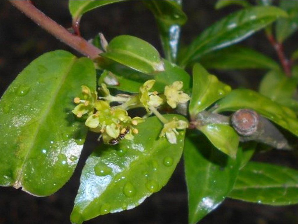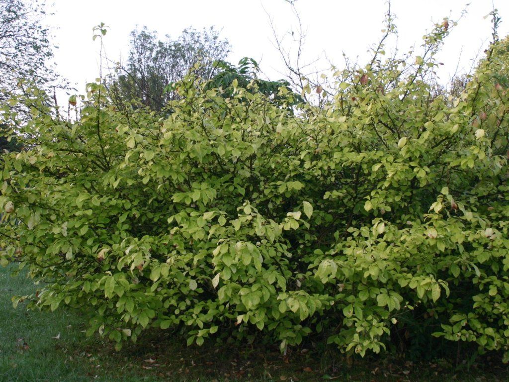 Orixa japonica - ein eher spärlich wachsender Strauch, der in der Natur bis zu 3 m hoch wird, im Garten aber etwa 1,5 - 2 m erreicht. Die Blätter sind verkehrt eiförmig, wechselständig, ganzrandig, glänzend und etwa 10 cm lang. Sie haben eine frische grüne Farbe, die sich im Herbst zu einem hellen Gelb bis fast Weiß ändert. Dieses Phänomen kommt in der Gruppenpflanzung mit anderen Gehölzen wunderbar zur Geltung. Die Blüten sind gelb-grün und unauffällig. Sie blühen vor oder während des Laubaustriebs, also im April. Die Früchte sind Balgfrüchte, ähnlich den Früchten der Weinraute.