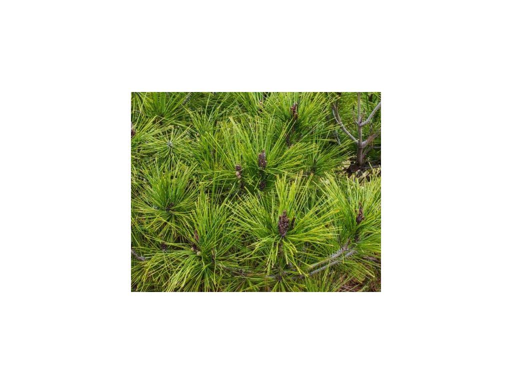 Japanische Rotkiefer 'Compacta' - ein Zwergkultivar der Japanischen Rotkiefer, der sich durch langsames Wachstum, dichte Verzweigung und attraktive, feine Nadeln auszeichnet. Diese Sorte behält das charakteristische Aussehen der Art bei, jedoch in kompakterer Form, was sie zu einem idealen Gehölz für kleinere Gärten, Steingärten, Heidegärten oder die Kübelpflanzung macht. Das Wachstum ist langsam – die jährlichen Zuwächse liegen bei etwa 5–10 cm, die ausgewachsene Pflanze erreicht eine Höhe und Breite von etwa 1,5 bis 2 Metern, oft mit einer breit ausladenden, unregelmäßigen Krone. Die Nadeln sind fein, weich, hell- bis gelbgrün, wachsen zu zweit im Büschel und erzeugen ein frisches und leicht flauschiges Aussehen. Der Gesamthabitus wirkt sehr natürlich und luftig, mit einer fein gegliederten Verzweigungsstruktur. Dank ihres kompakten Wachstums und ihres dekorativen Aussehens eignet sie sich nicht nur als Solitär, sondern auch für Gruppenpflanzungen oder als Teil von Gärten, die von japanischer Ästhetik inspiriert sind. Die Japanische Rotkiefer 'Compacta' ist ein anspruchsloses, immergrünes und langlebiges Gehölz, das auch auf kleinem Raum einen ruhigen, harmonischen Eindruck hinterlässt und das ganze Jahr über durch seine Feinheit und Struktur besticht.