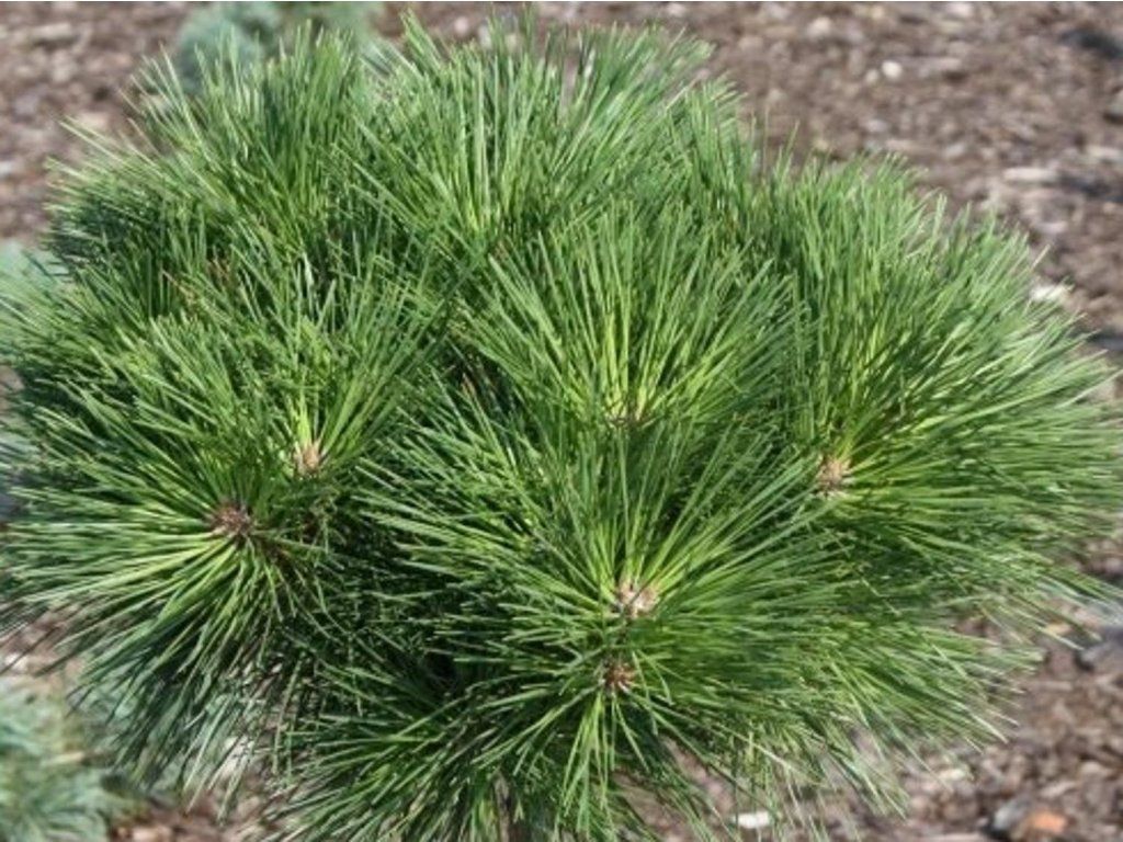 Feldkiefer 'Watnong' - auch bekannt als japanische rote Kiefer, stammt aus Ostasien und wächst in freier Wildbahn an sonnigen, oft felsigen Hängen und an Waldrändern in Japan, Korea und Nordostchina. Bei der Art wird die orange bis rotbraune Rinde geschätzt, die sich mit dem Alter in Platten ablöst, sowie die flexiblen Nadeln in Zweierbündeln. Der Kultivar 'Watnong' ist eine Zuchtauswahl mit stark verdichteter Verzweigung und kissenförmigem Wuchs, der auch ohne Eingriff kompakt wirkt. Mit zehn Jahren erreicht sie etwa 60 cm Höhe und etwa 80 cm Breite, wodurch sie sich für kleinere Gärten, Steingärten und Kiesbeete eignet. Die Nadeln haben eine tiefgrüne Farbe und erzeugen durch ihre dichte Anordnung eine flauschige Oberfläche. Im Frühjahr können sich kleine Pollenzapfen entwickeln, später kleinere Zapfen, die oft an den Zweigen von Kiefern verbleiben und auch im Winter Struktur verleihen. In der Komposition lässt sich der Kultivar gut mit Heidekraut, niedrigen Azaleen, Fetthenne und Ziergräsern kombinieren, wo Form und Textur der Nadeln kontrastieren. Dank ihrer kompakten Größe eignet sie sich auch für Vorgärten als niedrige Dominante, wo sie die benachbarten Stauden nicht überragt, und ist auch für die Gestaltung im Niwaki-Stil für kleinere Gärten geeignet.