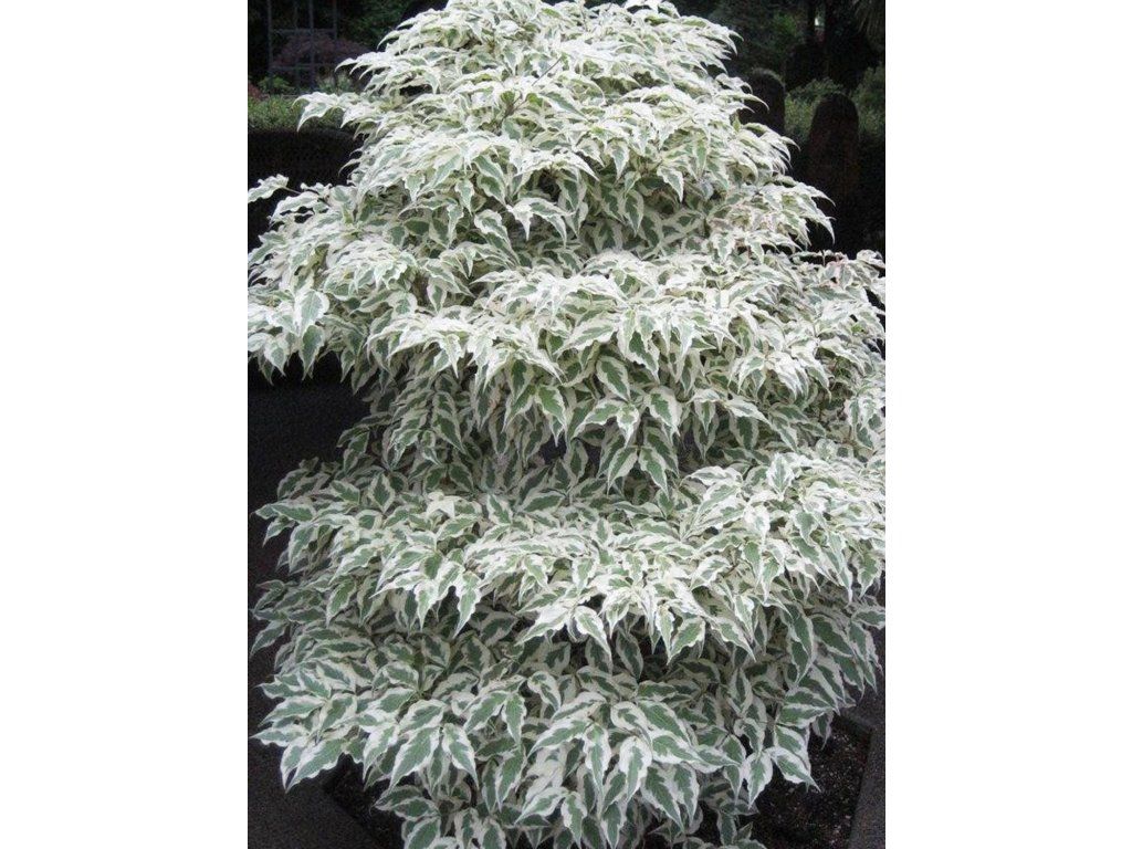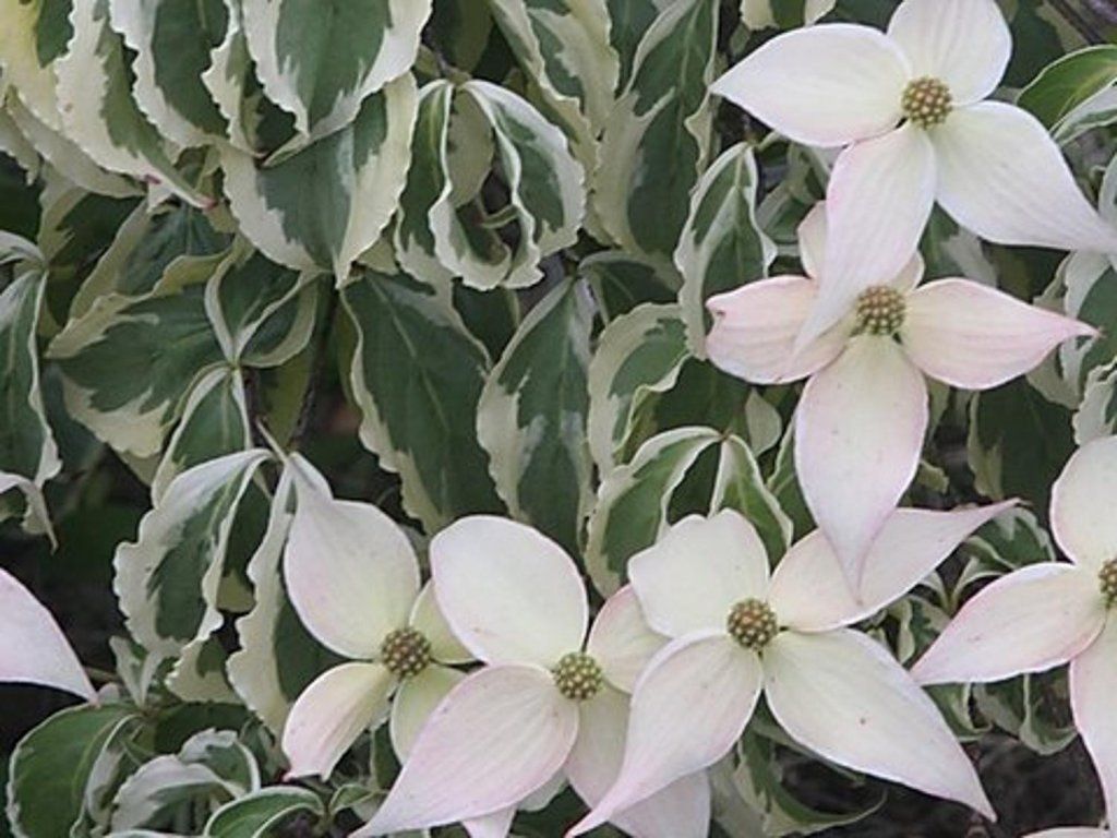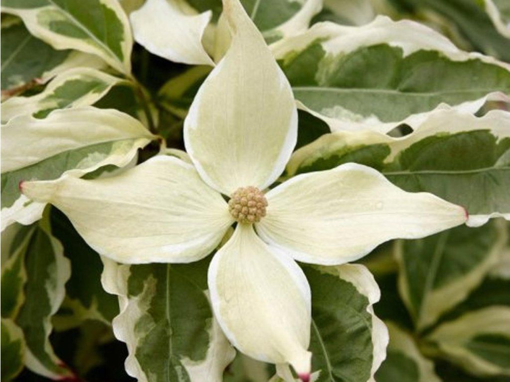 Japanischer Hartriegel 'Summer Fun' - eine farbenfrohe Sorte, die die Blicke jedes Gartenbesuchers auf sich zieht. Erreicht eine Höhe von 3 - 5 m und eine Breite von etwa 2 - 3 m. Die Blätter sind gewellt, spitz zulaufend und haben eine frische grüne Farbe, die Ränder sind panaschiert mit einem cremefarbenen Gelbton. An der Pflanze hängt sie elegant. Im Herbst verfärbt sich das Grün rot und orange, und das Cremefarbene wird rosa. Ende des Frühlings erscheinen breite Hochblätter, die in weißer Farbe leuchten. Die Blüte ist üppig, der Strauch ist buchstäblich übersät. Japanische Hartriegel werden häufig als Solitärpflanzen gepflanzt.