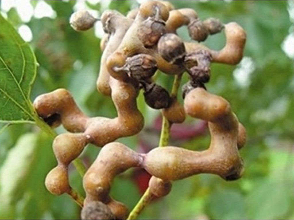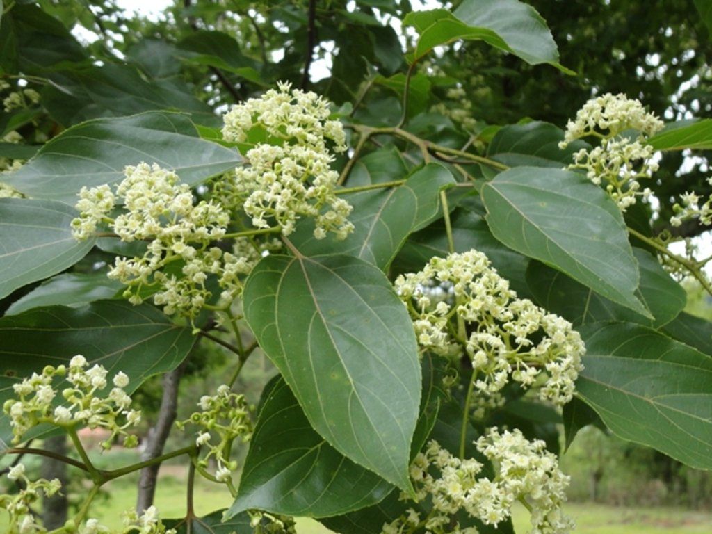 Hovenia dulcis - ein laubabwerfender Baum oder Strauch aus der Familie der Rhamnaceae, der aus Ostasien stammt, hauptsächlich aus China, Korea und Japan, wo er an Waldrändern und in wärmeren Bergregionen wächst. Unter europäischen Bedingungen wird er als weniger verbreitete Obstsorte und als Sammlergehölz angebaut. Er erreicht eine Höhe von 6-10 m und eine Breite von 4-8 m und bildet eine ausladende bis breit-eiförmige Krone. Die Blätter sind wechselständig, breit-eiförmig, 8-15 cm lang, mit auffälliger Nervatur und verfärben sich im Herbst gelb. Im Juni bis Juli erscheinen Rispen kleiner weißlicher Blüten, die Nektar und Pollen für Bestäuber liefern. Nach der Blüte entwickeln sich kleine trockene Kapseln, doch von wirtschaftlicher Bedeutung sind die fleischigen Blütenstiele. Diese verfärben sich im September bis Oktober gelbbraun bis rotbraun, werden fleischig und entwickeln einen süßen Geschmack, der an Trockenfrüchte, Birnen oder Rosinen erinnert. Sie werden frisch, getrocknet oder zur Zubereitung von Sirupen und Getränken verzehrt. Sie enthalten einfache Zucker, geringe Mengen an Vitamin C und Mineralstoffe. In der traditionellen asiatischen Heilkunde werden verschiedene Teile der Pflanze, insbesondere Früchte und Stiele, zur Zubereitung von Abkochungen verwendet.