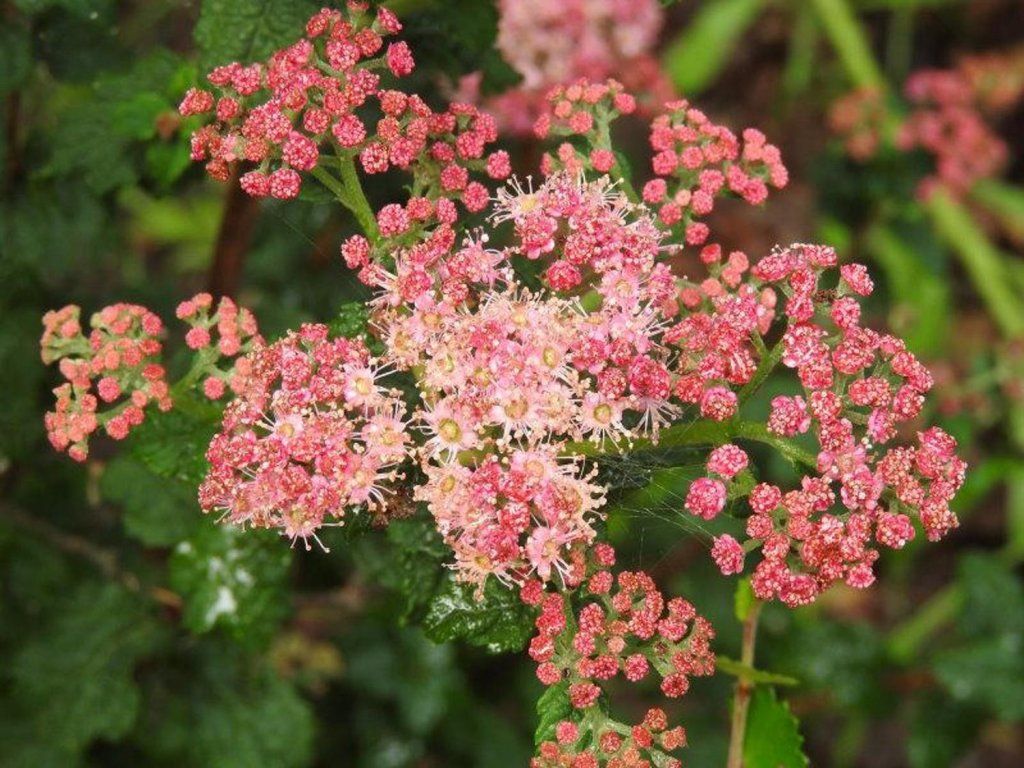 Spierstrauch 'Bullata' - ist ein laubabwerfender und niedriger Strauch. Sie erreicht eine Höhe von 40-60 cm. Er bildet einen kompakten und kugelförmigen Zwergstrauch. Sein Nachteil ist das sehr langsame Wachstum. Die Blätter sind klein, formschlicht, dunkelgrün gefärbt, die Ränder sind gesägt. Im Herbst färbt sie sich orange. Die Blüten sind dunkelrosa und in halbkugeligen Blütenständen angeordnet. Er blüht im Juni und Juli, nach dem Rückschnitt kann er erneut blühen.