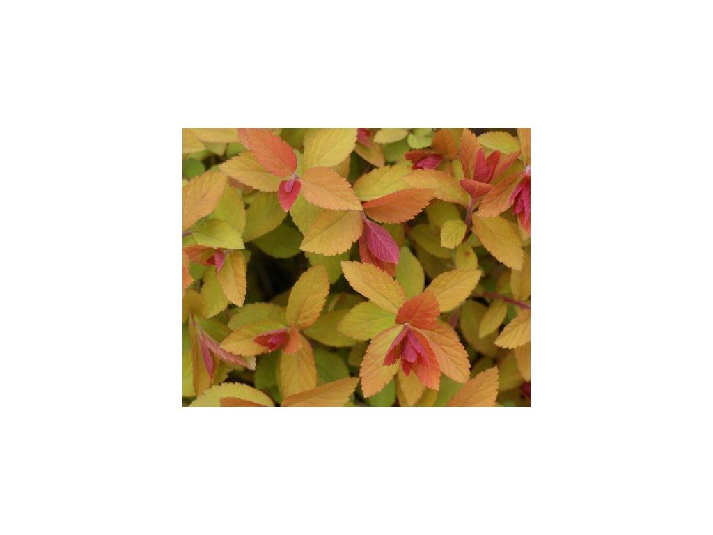 Japanischer Spierstrauch Double Play Big Bang 'Tracy' PBR - ist ein laubabwerfender Zwergstrauch. Wird 60 bis 80 cm hoch. Er bildet einen kompakten und kugelförmigen Zwergstrauch. Die Blätter sind eiförmig und gelblich gefärbt. Im Herbst färbt sie sich orange. Die Blüten sind üppig und rosa, in halbkugeligen Blütenständen angeordnet. Er blüht im Juni und Juli, nach dem Rückschnitt kann er erneut blühen.