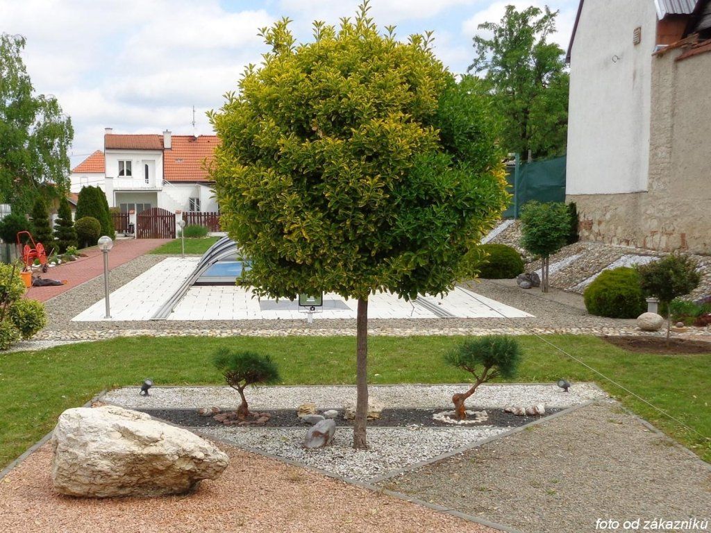 Japanischer Spindelstrauch 'Aurea' - ein sehr beliebter, robuster, immergrüner Strauch, der vor allem wegen seiner Anspruchslosigkeit geschätzt wird. Die Sorte 'Aurea' (in der Gartenpraxis oft auch als 'Aureus', 'Aureopictus' oder 'Luna' bezeichnet) wird für ihr kontrastreiches, zweifarbiges Laub geschätzt. Die festen, ledrigen Blätter sind oval, etwa 5–6 cm lang, am Rand glänzend dunkelgrün und tragen in der Mitte einen ausgeprägten gelben Fleck, der im Winter in goldene Töne übergeht. Der Strauch wächst dicht und aufrecht, in der Tschechischen Republik normalerweise etwa 1,2–1,5 m hoch und etwa 0,8–1 m breit, bei regelmäßiger Formung bleibt er niedriger und kompakter. Von Mai bis Juni erscheinen kleine, grünlich-weiße Blüten, aus denen sich nur gelegentlich rosafarbene Kapseln mit orangefarbenen Samen entwickeln. Die Früchte sind Zierfrüchte und für den Menschen ungenießbar. In der Komposition bildet er das immergrüne Gerüst eines Beetes, eignet sich gut als niedrige Hecke, Solitär am Eingang oder als heller Akzent vor dunklen Nadelbäumen, in Kombination mit Gräsern, Funkien oder blau blühenden Stauden.