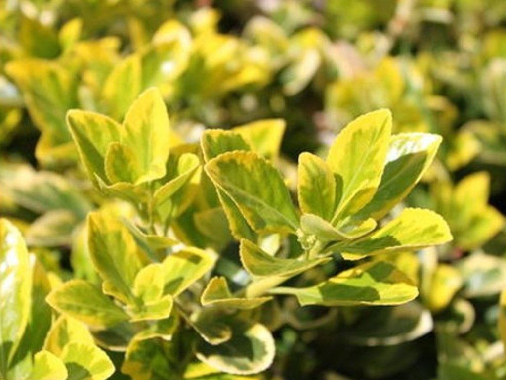 Japanischer Spindelstrauch 'Aureomarginata' - dichter, immergrüner, kompakter Strauch, kugelförmiger Gestalt. Erreicht eine Höhe von 2,5 m und eine Breite von 1 m. Die Blätter sind größer, von hell- bis dunkelgrüner Farbe, mit einer ausgeprägten, breiteren, goldgelben Umrandung. Neue Triebe sind stärker gelb gefärbt. Blüht eher unauffällig im Juni und Juli. Sehr gut schnittverträglich, daher eine geeignete Pflanze für niedrige Hecken.