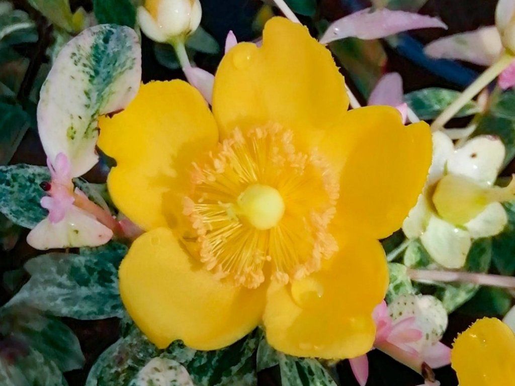 Johanniskraut 'Radiance' - ein niedriger, interessanter Strauch, der etwa 50-80 cm hoch und ähnlich breit wird. Junge, eiförmige Blätter sind rosa, später verfärbt sich die Farbe zu Weiß und es erscheint eine grüne Marmorierung, gefolgt von einer grünen Farbe, die das gesamte Blatt bedeckt. Von Juni bis September blüht sie mit leuchtend gelben Blüten. Ein idealer Strauch, geeignet für die Kultur in Gefäßen, Staudenbeeten, aber auch als Solitärpflanze sieht er wunderschön aus.