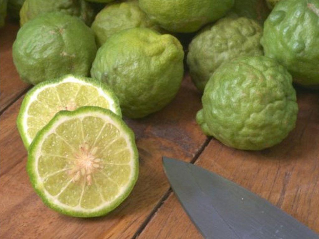 Kaffirlimette - immergrüner Baum, erreicht eine Höhe von 1 m. Unter unseren Bedingungen wird sie als Zierpflanze für Innenräume angebaut. Die Blüten sind weiß und purpurfarben.Die Früchte haben eine birnenförmige Gestalt, eine grün-gelbe Farbe und sind auf der Oberfläche voller kleiner Beulen. Die Rinde hat einen bitteren Geschmack und kann getrocknet werden. Die Blätter haben ein ausgeprägteres Zitronenaroma und werden als Gewürz verwendet. In frischer Form werden sie am häufigsten zu Salaten, Suppen, Soßen oder Tee hinzugefügt. Die Pflanze enthält eine große Menge Vitamin C und wird zur Linderung von Gelenkschwellungen verwendet.