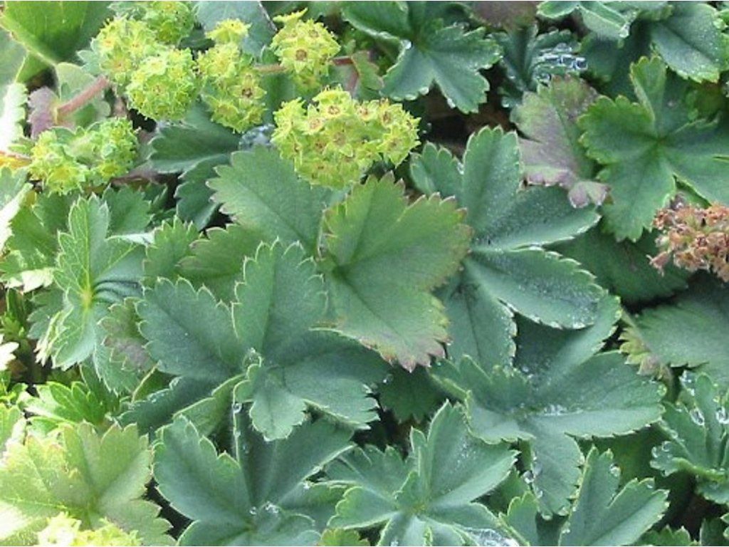 Frauenmantel - eine niedrige Staude, die bis zu 30–40 cm hoch wird und für ihr frischgrünes Aussehen und ihre Anspruchslosigkeit geschätzt wird. Seine zarten, handförmig gelappten Blätter zeichnen sich durch ihre glänzende Oberfläche und die elegante Wellung am Rand aus. Die Blätter können Tautropfen einfangen, was der Pflanze einen magischen Touch verleiht. Von Mai bis Juli blüht sie mit kleinen, gelbgrünen Blüten, die in lockeren Rispen angeordnet sind. Diese Blüten, obwohl unscheinbar, verleihen dem Garten Zartheit und wirken sehr dekorativ. Sie lässt sich hervorragend mit Stauden wie Astilben, Funkien oder Farnen kombinieren.