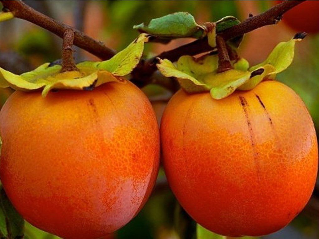 Kaki 'Brilliant Red' - selbstfruchtende, großfruchtige Sorte der Kaki mit attraktiven rot-orangen Früchten und süßem, orangem Fruchtfleisch. Die Früchte reifen im Herbst und können sofort nach der Ernte vom Baum verzehrt werden, ohne dass eine zusätzliche Nachreife erforderlich ist. Der Baum erreicht im ausgewachsenen Zustand eine Höhe von etwa 4 Metern und zeichnet sich durch hohen Ertrag aus. Die Ernte findet von Mitte September bis Mitte Oktober statt, wenn die Früchte ihren vollen Geschmack und ihre volle Farbe entwickeln. Dank ihrer Selbstfruchtbarkeit und zuverlässigen Erträge ist 'Brilliant Red' die ideale Wahl für Hausgärten und kleinere Obstplantagen.