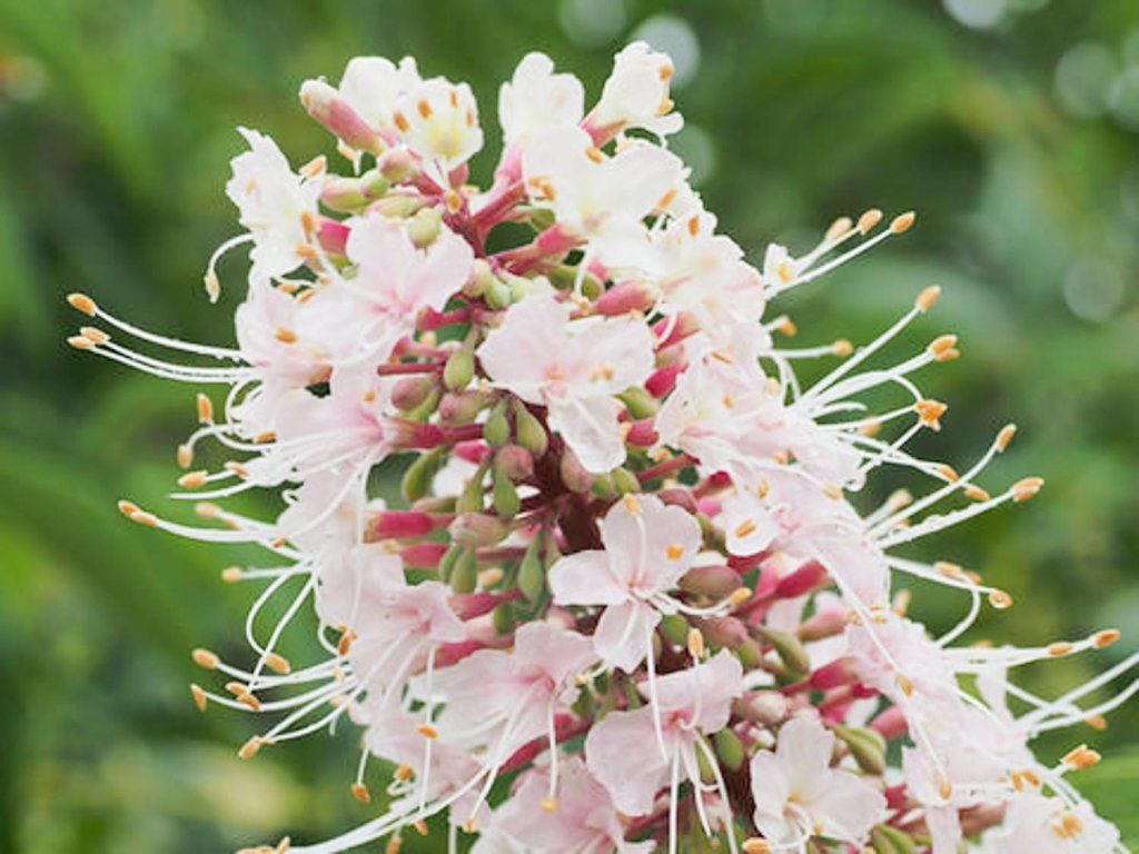 Kalifornische Rosskastanie - kleiner, oft mehrstämmiger Baum, der sowohl in der Höhe als auch in der Breite etwa 9 m erreicht. Das Habit ist dicht, mit einer offenen, flachen Krone. Der Stamm ist in der Regel kurz; er zeichnet sich durch eine silbrig-weiße Rinde aus. Die Blätter sind groß, gefiedert und haben eine dunklere grüne Farbe. Im Frühling erscheinen lange Blütenstände; die Farbe der einzelnen Blüten ist weiß, mit einem leichten, rosafarbenen Hauch.