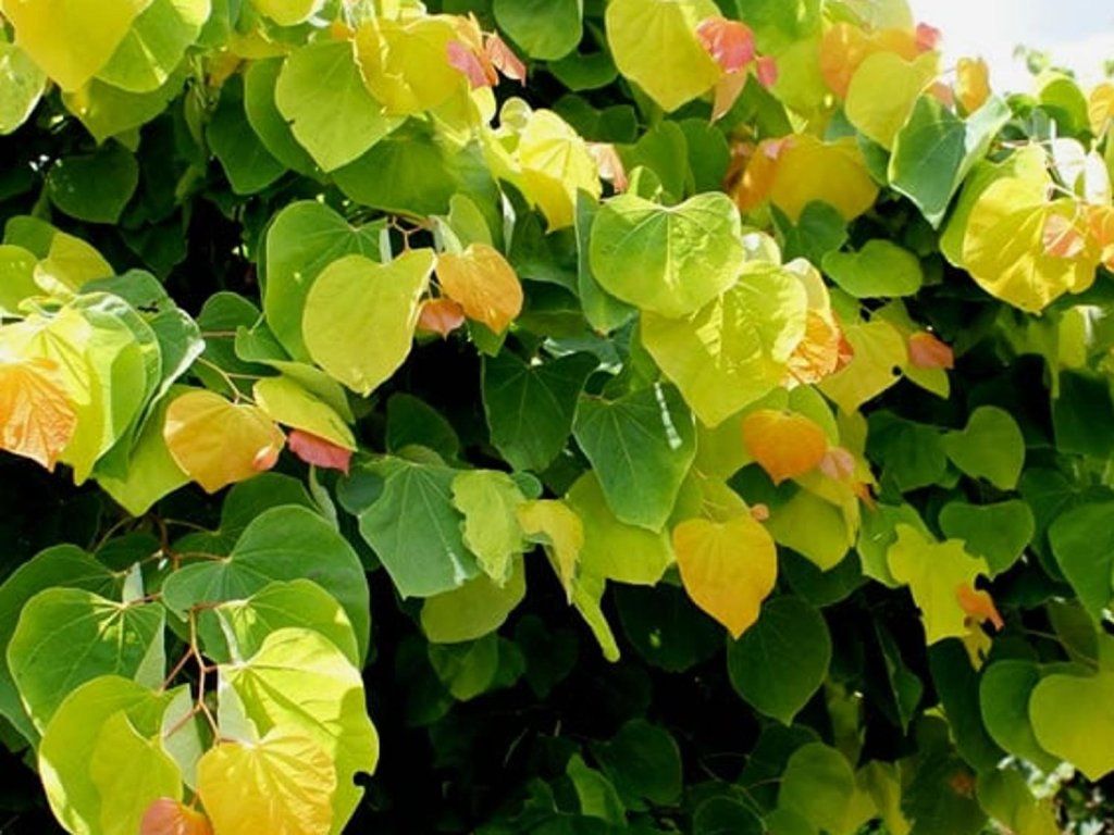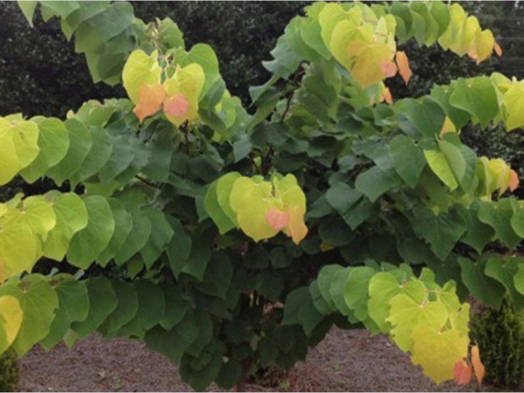 Kanadischer Judasbaum THE RISING SUN 'Jn2' - bildet einen schnell wachsenden, niedrigen Baum oder einen höheren Strauch, der eine Höhe und Breite von 2 - 4 m erreicht. Schwächere Zweige bilden einzelne Etagen; einige sind leicht hängend. Die Blätter sind breit und herzförmig. Ihre Besonderheit ist, dass sie zur gleichen Zeit unterschiedlich gefärbt sind. Neu austreibende Blätter an den Astspitzen sind gelb-orange, weitere nach innen gerichtete Blätter sind in Gelb-, Gelbgrün-, Hellgrün- und Grüntönen gehalten. Im Herbst sind sie dann gelb-rot. Noch vor dem Laubaustrieb erscheinen an den kahlen Zweigen kleine, rosa Blüten. Ein sehr interessanter Solitär für Ihren Garten.