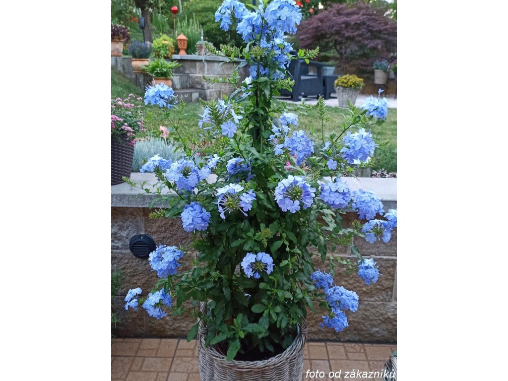 Bleiwurz - eine schöne, anspruchslose Pflanze mit vielfältigen Einsatzmöglichkeiten. Sie kann in einem Topf als Strauch (in diesem Fall ist eine Stütze erforderlich) oder als Hängepflanze angebaut werden. Wächst schnell in die Höhe von 180 - 300 cm und in die Breite von 240 - 300 cm. Jedes Jahr von Frühling bis Herbst erfreut sie uns mit einer Fülle von himmelblauen Blüten, die in kugelförmigen Gruppen erscheinen. Aufgrund der geringeren Frostbeständigkeit empfehlen wir, sie als Kübelpflanze zu kultivieren oder im Winter für eine geeignete Überwinterung zu sorgen.