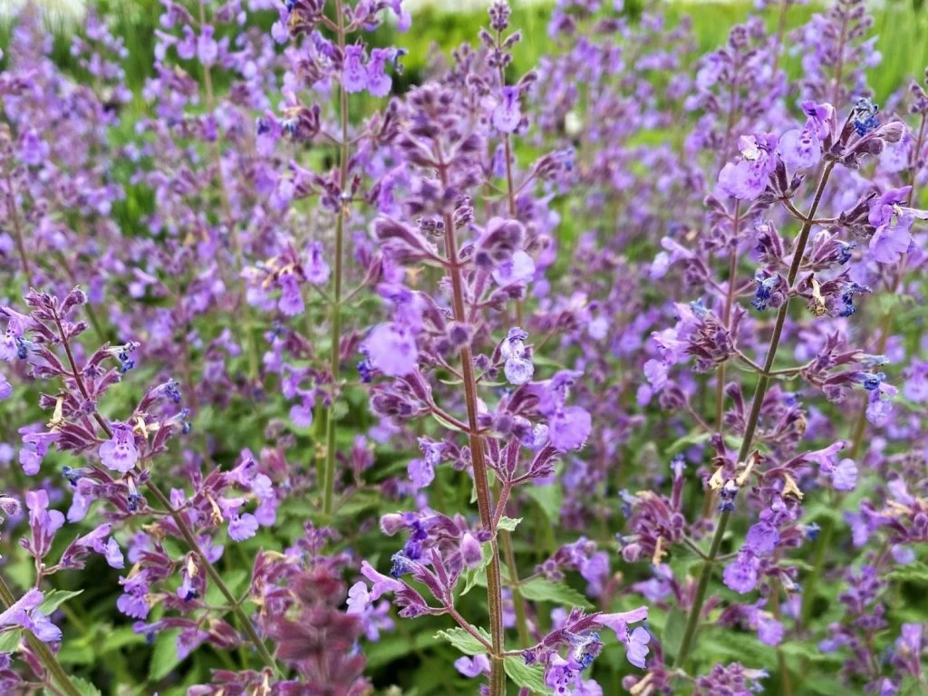 Zitronenmelisse 'Junior Walker' - eine interessante Sorte der Katzenminze, die für ihr kompaktes Wachstum und ihre üppige Blüte geschätzt wird. Diese Sorte ist eine Kreuzung zwischen Nepeta racemosa und Nepeta nepetella. Sie ist eine kompakte Staude mit aromatischen Blättern und aufrechten Stängeln. Sie erreicht normalerweise eine Höhe von etwa 20-30 Zentimetern. Die Blätter sind meist graugrün und herzförmig. Die Blüten sind blau und bilden dichte Blütenstände an den Stielenden. Blüht mit blauen Blüten von Juni bis August. Sie ist eine reichblühende Sorte, deren blaue Blüten für Bienen, Schmetterlinge und andere Bestäuber attraktiv sind. Sie blüht vom späten Frühling bis zum Sommer und manchmal auch später, was sie zu einer großartigen Pflanze macht, um Insekten in den Garten zu locken. Diese Sorte eignet sich als Zierstaude für verschiedene Gartengestaltungen. Sie eignet sich für Beete, Steingärten, aber auch als Teil von gemischten Pflanzungen. Blaue Blüten verleihen dem Garten ein frisches und fröhliches Aussehen. Insgesamt ist sie eine ausgezeichnete Wahl für Gärtner, die eine anspruchslose und attraktive Staude mit blauen Blüten suchen. Ihre Fähigkeit, in verschiedenen Bodentypen zu wachsen, und ihre einfache Pflege machen sie zu einer beliebten Pflanze für viele Gärten und Gärtner.