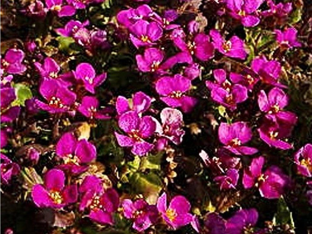 Felsenblümchen 'Compinkie' - eine niedrige Polsterstaude für sonnige bis halbschattige Standorte. Er wächst bis zu einer Höhe von 15 cm. Sie blüht von April bis Mai. Die Blüten sind wunderschön. Gleichzeitig erscheinen hundert dunkelrosa Blüten. Wir pflanzen in durchlässigen Boden. Die Polster blühen im Frühling reichlich, pflegeleicht. Verwendung findet sie auf Steingärten, Terrassen, in Fugen, an Beeträndern, Böschungssteinen, Trögen, Trockenmauern usw. Es ist eine Nektarpflanze.