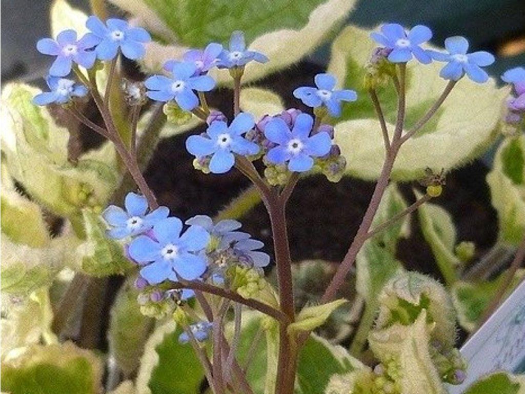 Brunnera macrophylla ´Hadspen Cream´ - Die Brunnera ist eine knollige Staude, die blaue oder weiße Blüten trägt. Es wird aber hauptsächlich wegen der interessanten Blätter angebaut. Es benötigt einen Standort im Halbschatten, unter Bäumen oder Sträuchern, normale Gartenerde genügt. Wenn es in der Sonne steht, muss es ständig feuchten Boden haben. Es wird als Bodendecker-Staude verwendet, wir pflanzen 4-6 Stück pro m2. Es wächst auch gut im trockenen Schatten, reagiert dort aber auf Wassermangel mit leicht welken Blättern.