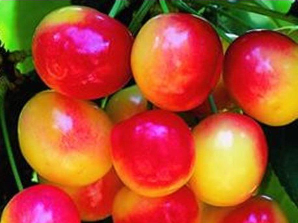 Kirsche 'Rainier' - eine Kirsche aus den USA, sehr ertragreich, Fremdbestäuber. Sie ist resistent gegen späte Fröste im Frühling, sowohl im Holz als auch in der Blüte. Die Krankheitsresistenz ist mittel. Die Früchte sind groß und herzförmig. Die Haut ist dünn, dunkelgelb und vollständig mit einem roten Anflug bedeckt. Das Fruchtfleisch ist cremig, knackig, saftig, geschmacklich delikat und sehr süß. Der Saft färbt mittelstark. Wir ernten die Kirschen in der 6. Kirschenwoche (26.7.-8.8.), sie eignen sich für den direkten Verzehr und zur Weiterverarbeitung. Geeignete Bestäuber sind die Sorten Stella, Van, Lapins.