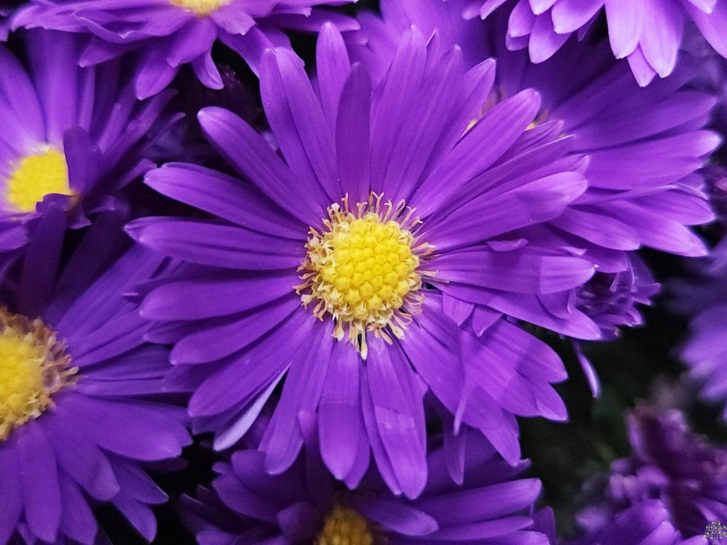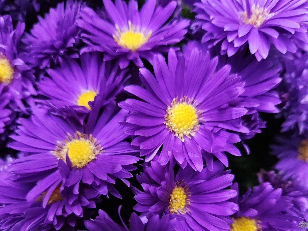 Felsen-Sternkissen 'Alpha Dark Purple' - eine niedrige Staude, die bis zu 25–30 cm hoch wird und dichte, kompakte Horste bildet. Sie blüht im Herbst, wenn sich üppige, tiefviolette Blüten mit einer ausgeprägten dunkelgelben Mitte zeigen. Die Blüten erinnern an kleine Margeriten und sind eine Attraktion für Schmetterlinge und andere Bestäuber. Die Blätter sind klein, schmal, dunkelgrün und bilden dichten Bewuchs. Sie ist ideal für die Bepflanzung von Beeten, Steingärten, aber auch für Gefäße oder Balkonkästen. Sie ist pflegeleicht und verleiht dem Garten Farbe in einer Zeit, in der andere Pflanzen bereits verblüht sind.