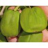Kiwi 'Chang Bai Giant' - eine weibliche Sorte aus den Bergregionen Nordostchinas, wo sie im Vorgebirge des Chang-Bai-Gebirges wächst. Das kühle, feuchtere Klima mit kürzeren Sommern prägte ihre Eigenschaften – Widerstandsfähigkeit gegen winterliche Temperaturen und zuverlässige Bildung größerer Früchte auch in gemäßigteren mitteleuropäischen Verhältnissen. Die Pflanze bildet lange, rankende Lianen, die im Garten etwa 6-8 m erreichen, bei Führung an einer Konstruktion normalerweise auch 3-4 m in die Breite. Die Triebe sind biegsam, grünbraun, die Belaubung besteht aus breit-eiförmigen, sattgrünen Blättern, die sich im Herbst gelb verfärben. Ende Mai bis Juni erscheinen in den Blattachseln kleine weiße bis cremefarbene Blüten mit zartem Duft, die von Bienen aufgesucht werden. Die Sorte ist weiblich und benötigt daher die Anwesenheit einer männlichen Actinidie zur Bestäubung. Die Früchte gehören zu den größten im Minikiwi-Sortiment. Sie sind abgeflacht bis herzförmig, etwa 4-5 cm lang, mit einer grünen, glatten Schale, die nicht geschält werden muss. Das Fruchtfleisch ist saftig, süß, mit einer leichten Säure und einem zarten Aroma, das an klassische Kiwi erinnert. Die Größe der Früchte kann je nach Standort, Feuchtigkeit und Bestäubung variieren. Sie reifen von Ende September bis Oktober, in wärmeren Lagen manchmal schon Anfang September. Sie eignen sich zum direkten Verzehr, für Obstsalate, Marmeladen oder Most. Wie andere Actinidien enthalten sie eine höhere Menge an Vitamin C, Antioxidantien und Ballaststoffen.