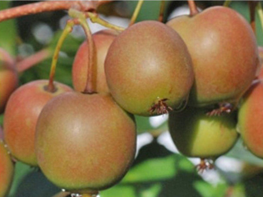 Kiwi 'Domino' - weibliche Kiwi-Sorte. Es handelt sich um eine Kletterpflanze. Die Schale ist rotbraun mit einem Hauch von Grün. Die Früchte sind 2,5 - 3,5 cm groß. Reife Früchte haben eine gelbgrüne Schale mit leichter Rötung. Der Wuchs ist kräftig und erreicht eine Höhe von etwa 10 m. Der jährliche Zuwachs beträgt etwa 2 m. Die Blätter sind oval und frischgrün. Blüht an der Wende von Mai und Juni. Die Blüten sind klein und weiß. Zur Bestäubung ist es notwendig, auch den männlichen Kultivar Weiki zu pflanzen. Die Sorte beginnt 2-3 Jahre nach der Pflanzung zu tragen. Die Früchte reifen Ende September/Anfang Oktober.