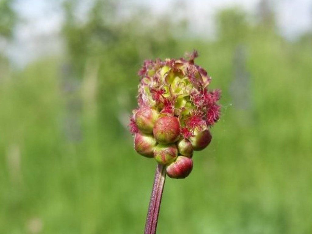 Großer Wiesenknopf - eine ausdauernde Pflanze, die vor allem durch ihre roten Blüten besticht, die in einer dichten Ähre blühen. Die Ähre ist anfangs kugelförmig, später elliptisch geformt. Zur Blütezeit erreicht die gesamte Pflanze eine Höhe von 1 m. Sie blüht von Mai bis Juli. Sie duftet sehr intensiv und würzig, weshalb sie Speisen zugesetzt wird. Die Blätter sind hellgrün und wachsen in einer grundständigen Rosette. Am häufigsten wird sie als Salatgemüse verwendet. Sie hat auch heilende Eigenschaften, fördert den Appetit und verbessert die Verdauung. Geeignet für Stauden- oder Kräuterbeete.