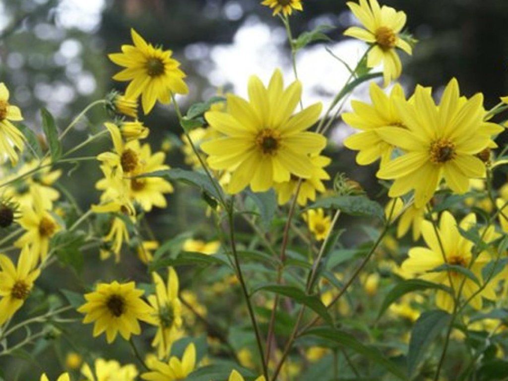 Sonnenblume kleinblütig - eine kräftige Staude, die besonders durch lange, überhängende Blätter, auf denen gelbe Blüten hervorstechen, besticht. Die Höhe beträgt etwa 150 cm. Blüht von August bis September. Die Sonnenblume ist buchstäblich eine Attraktion für Schmetterlinge und Bienen. Geeignet für Staudenbeete oder als Solitärpflanze. Eine sehr beliebte Dekoration für Vasen.