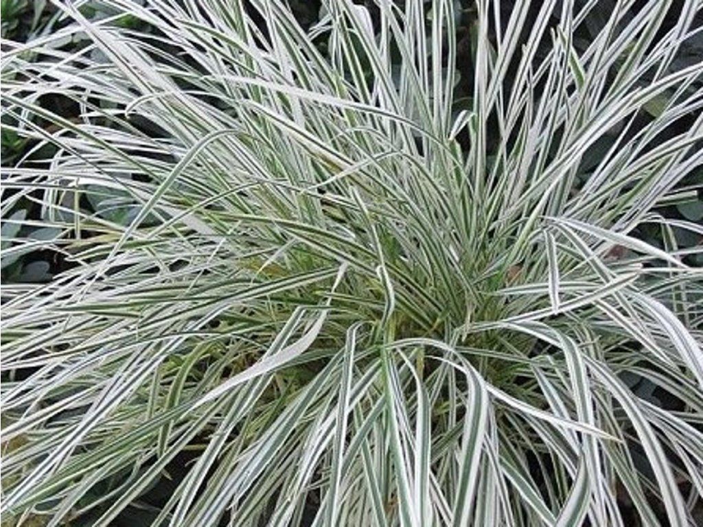 Gras-Segge 'Variegatum' - horstbildendes, ausdauerndes Gras. Es bildet Speicherknollen, die es der Pflanze ermöglichen, auch auf mageren Böden und trockeneren Standorten zu überleben. Es hat 40 cm lange, 5 bis 10 mm breite, längs weiß gestreifte Blätter. Der Horst erreicht eine Höhe von 30 bis 40 cm. Durch langsames Ausläuferbilden entstehen lockere Bestände. Auf Halmen von bis zu 70 cm Länge erscheinen lockere gelbliche Rispen. Benötigt einen sonnigen Standort, verträgt aber auch lichten Halbschatten und sehr gut durchlässigen Boden. Der Aufrechte Hafer findet Anwendung in kleinen Gruppen sowie als Solitärpflanze in Staudenbeeten und Heidegärten.